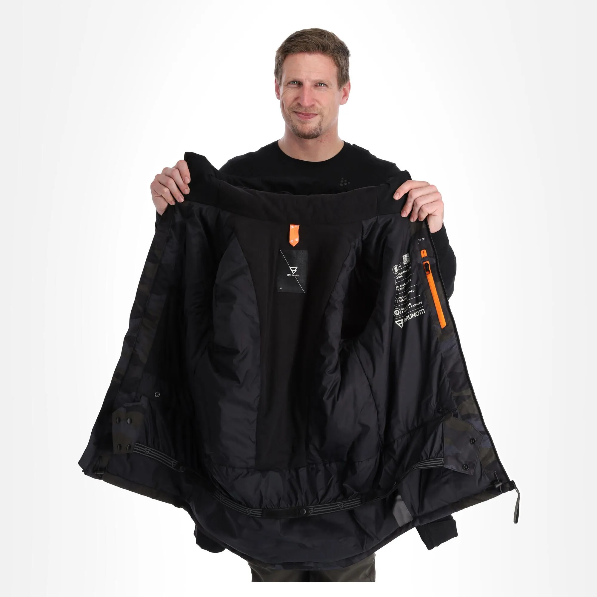 - Orifice à écouteurs La veste de ski a un orifice spécial par lequel vos écouteurs peuvent passer. De cette façon, votre appareil est rangé en toute sécurité dans une poche intérieure et votre veste de ski reste bien fermée.