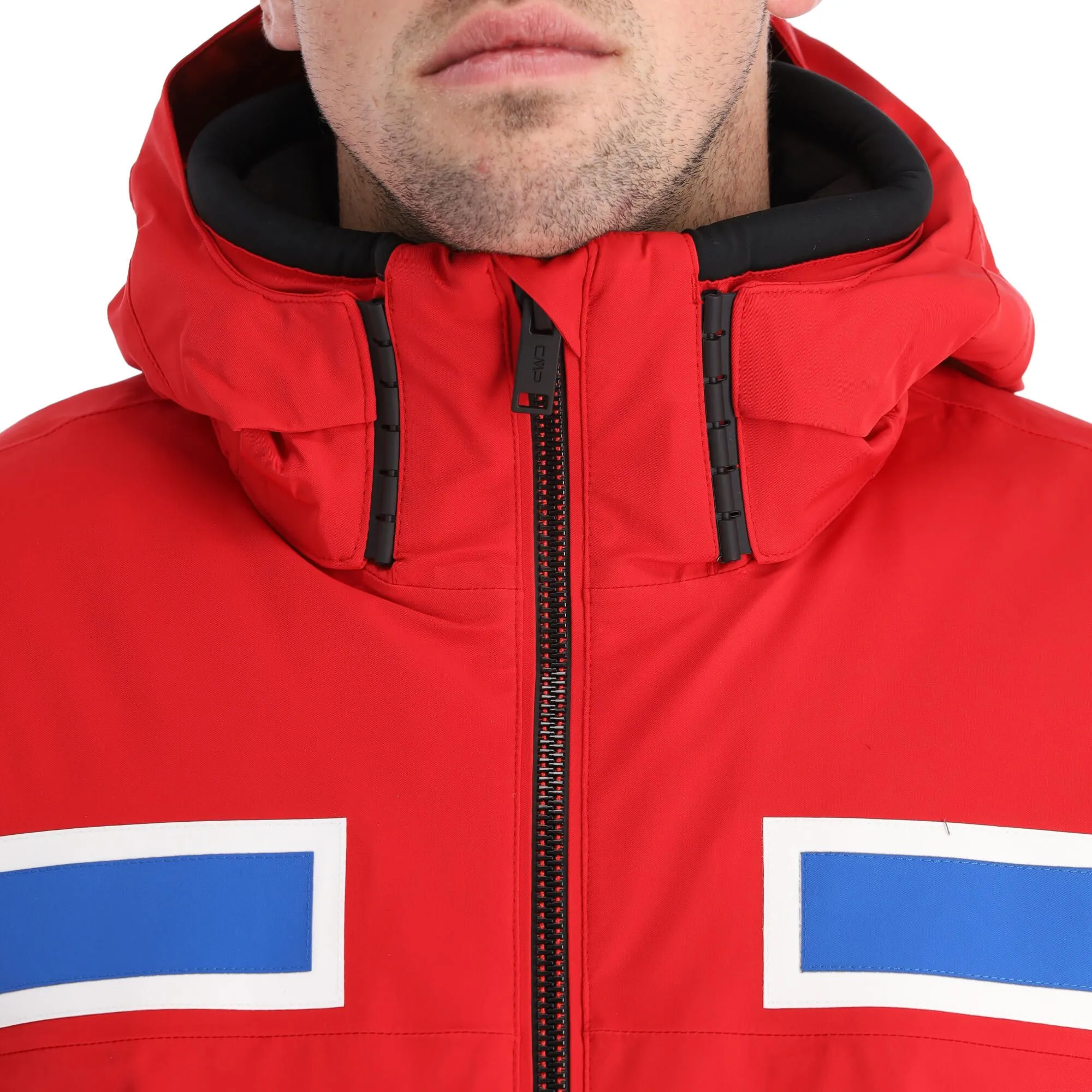 - Cache-menton Votre menton est protégé par un cache-menton en haut de la grande fermeture éclair. Cela évite que votre menton n’entre en contact direct avec la fermeture éclair de la veste de ski.