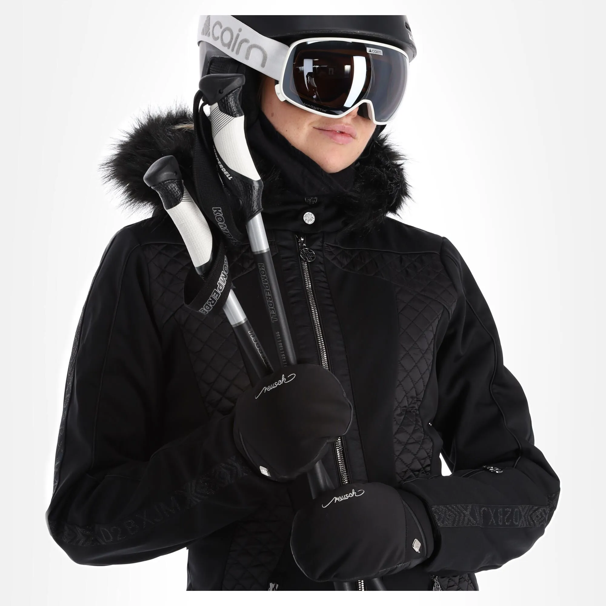 - Col en fausse fourrure La veste de ski a un col avec de la fausse fourrure.