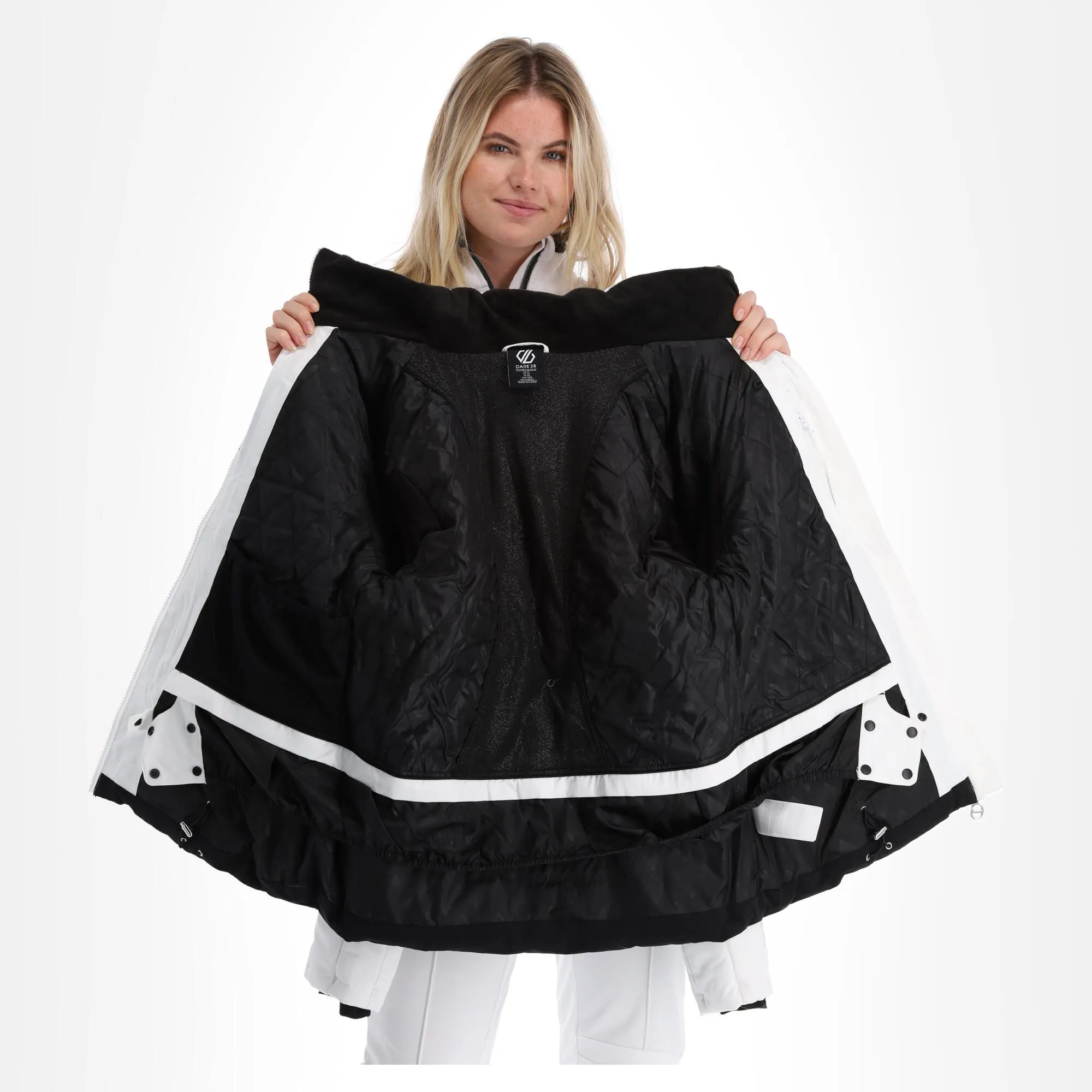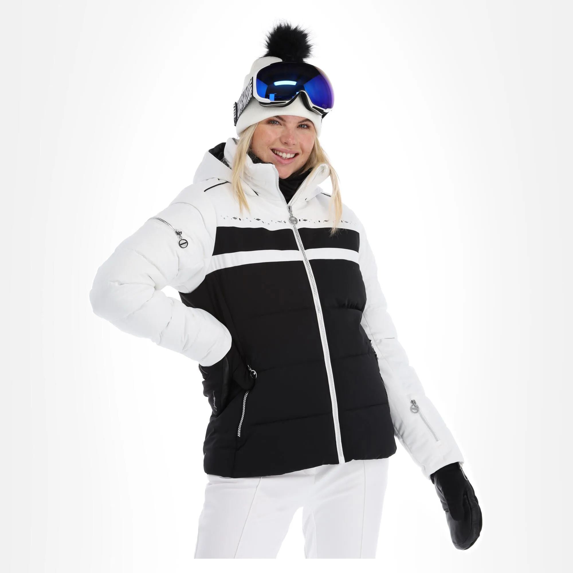 - Jupe pare-neige amovible La veste de ski est munie en bas d’une bande élastique amovible. Cela empêche la neige de pénétrer dans votre veste de ski par en-dessous, mais vous pouvez également la retirer si besoin.
