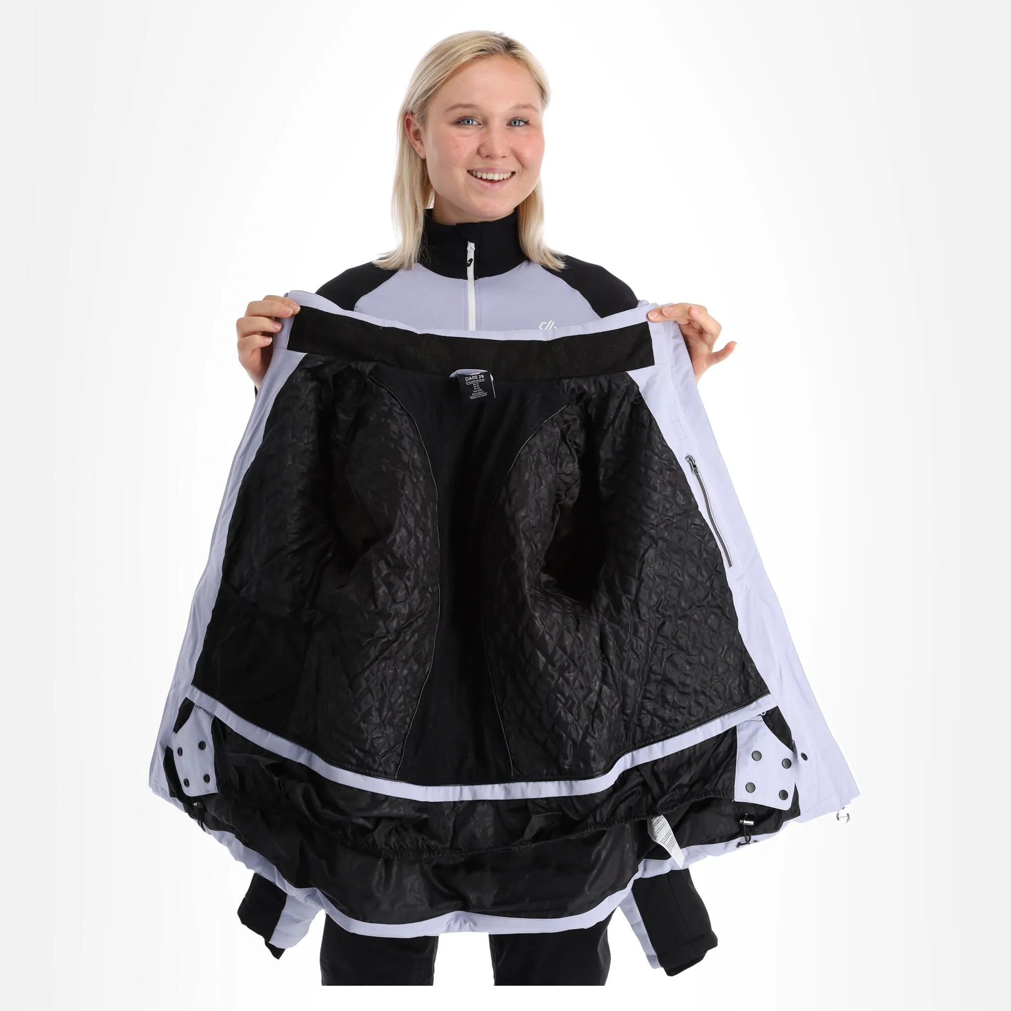 - Jupe pare-neige amovible La veste de ski est munie en bas d’une bande élastique amovible. Cela empêche la neige de pénétrer dans votre veste de ski par en-dessous, mais vous pouvez également la retirer si besoin.
