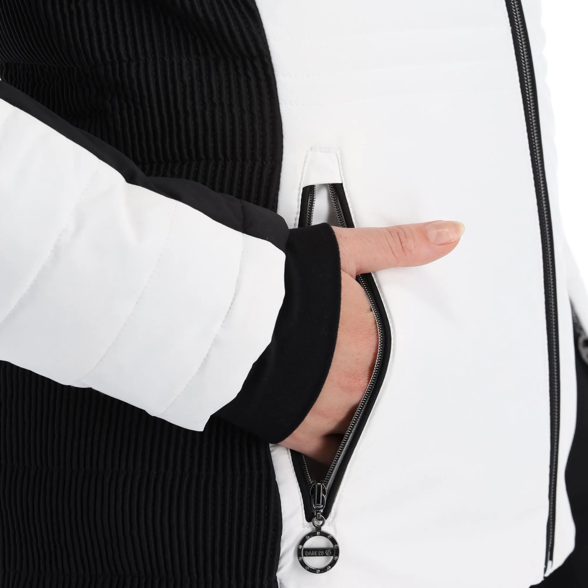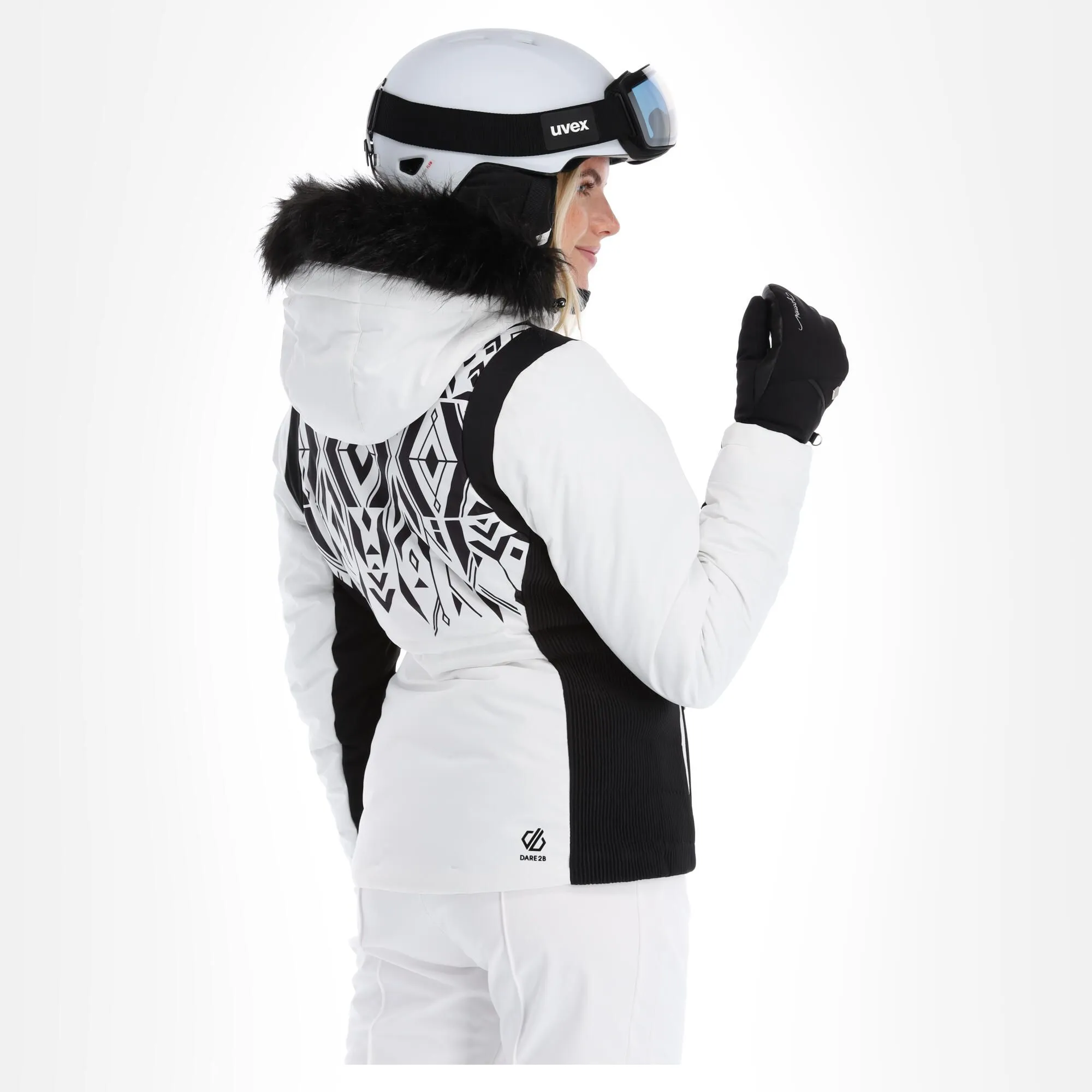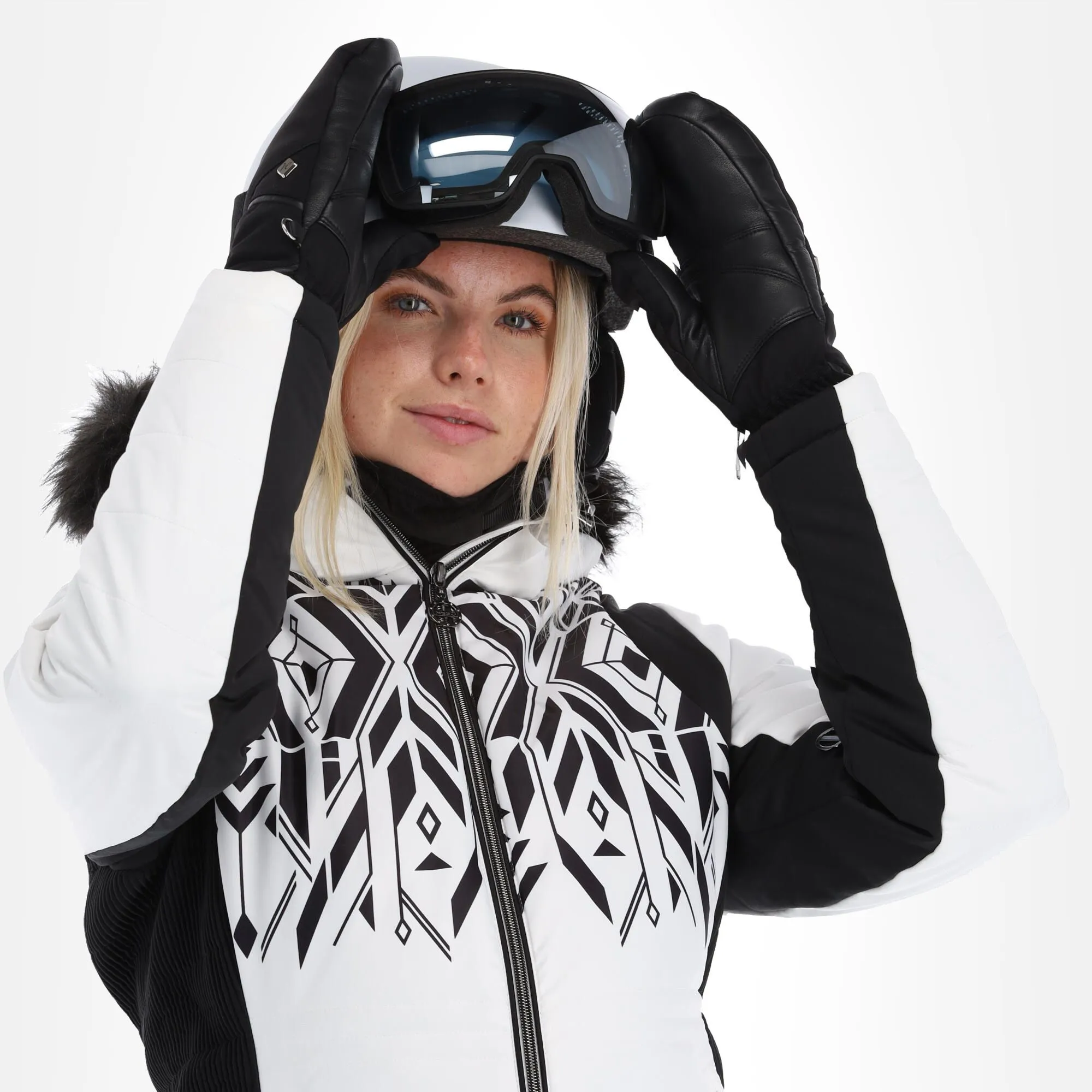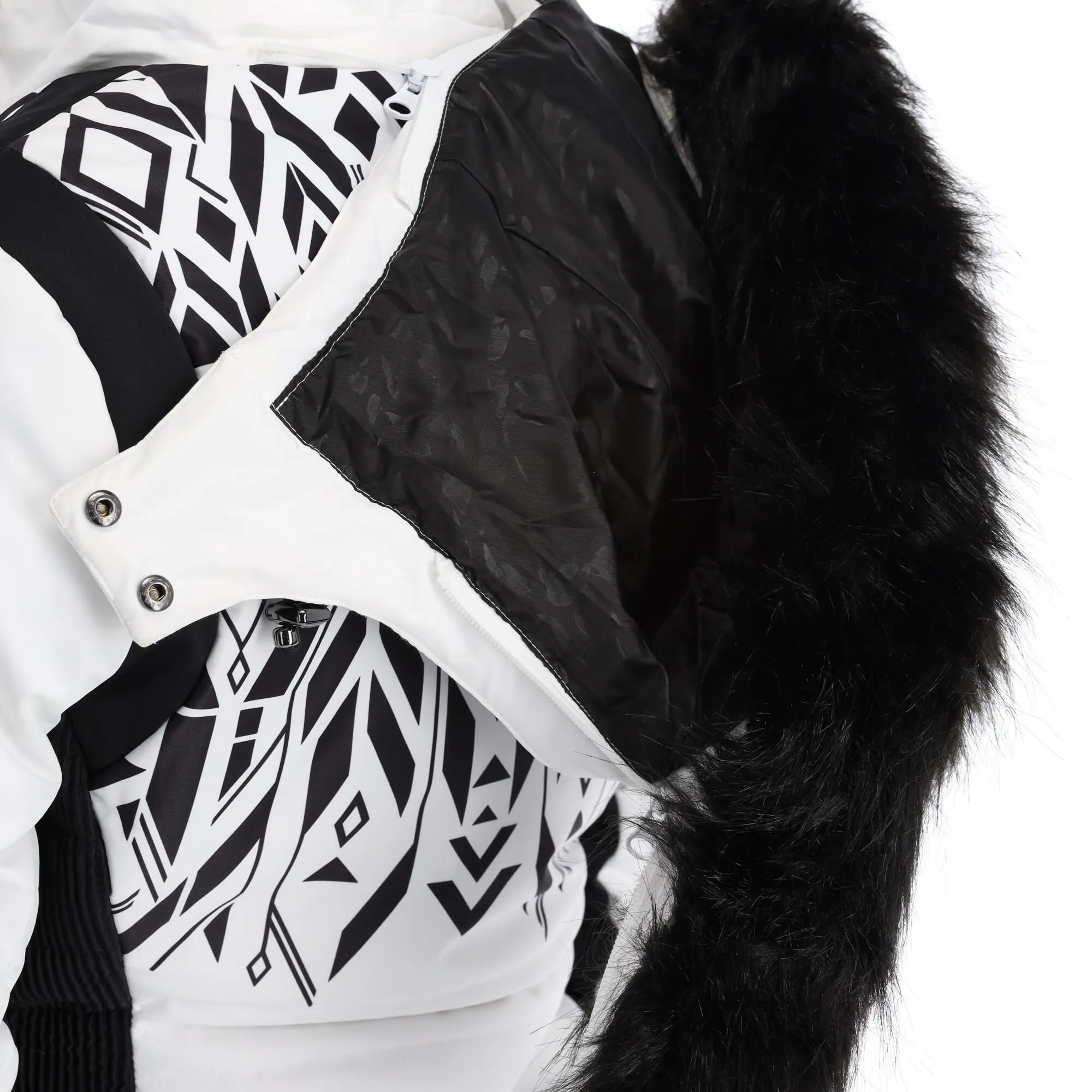 - Col en fausse fourrure La veste de ski a un col avec de la fausse fourrure.