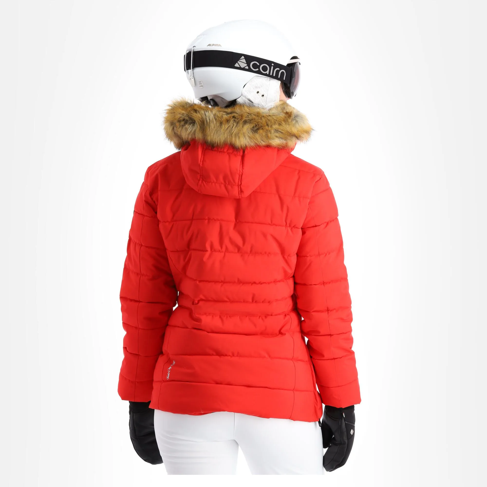 - Col en fausse fourrure La veste de ski a un col avec de la fausse fourrure.