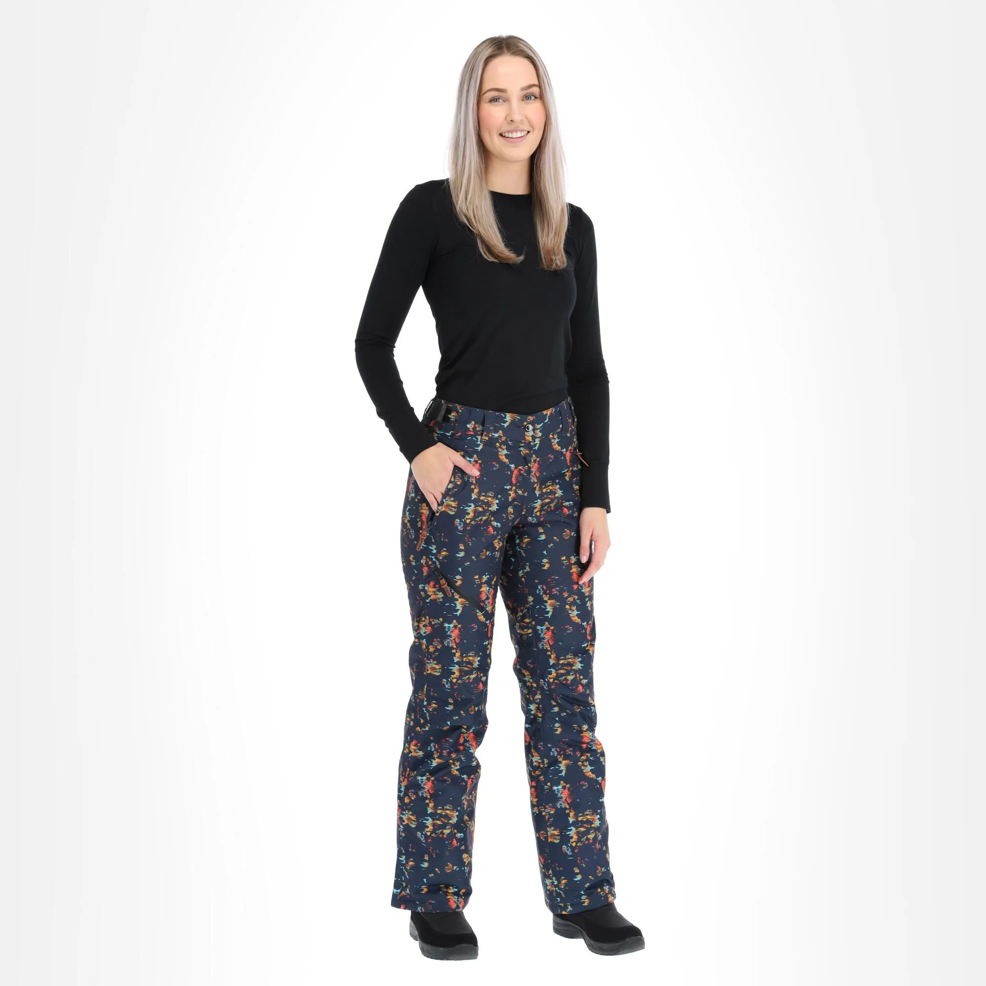 - Bas de jambes zippé Grâce à la fermeture éclair au bas de la jambe du pantalon vous pouvez enfiler plus facilement vos chaussures de ski ou de snowboard.