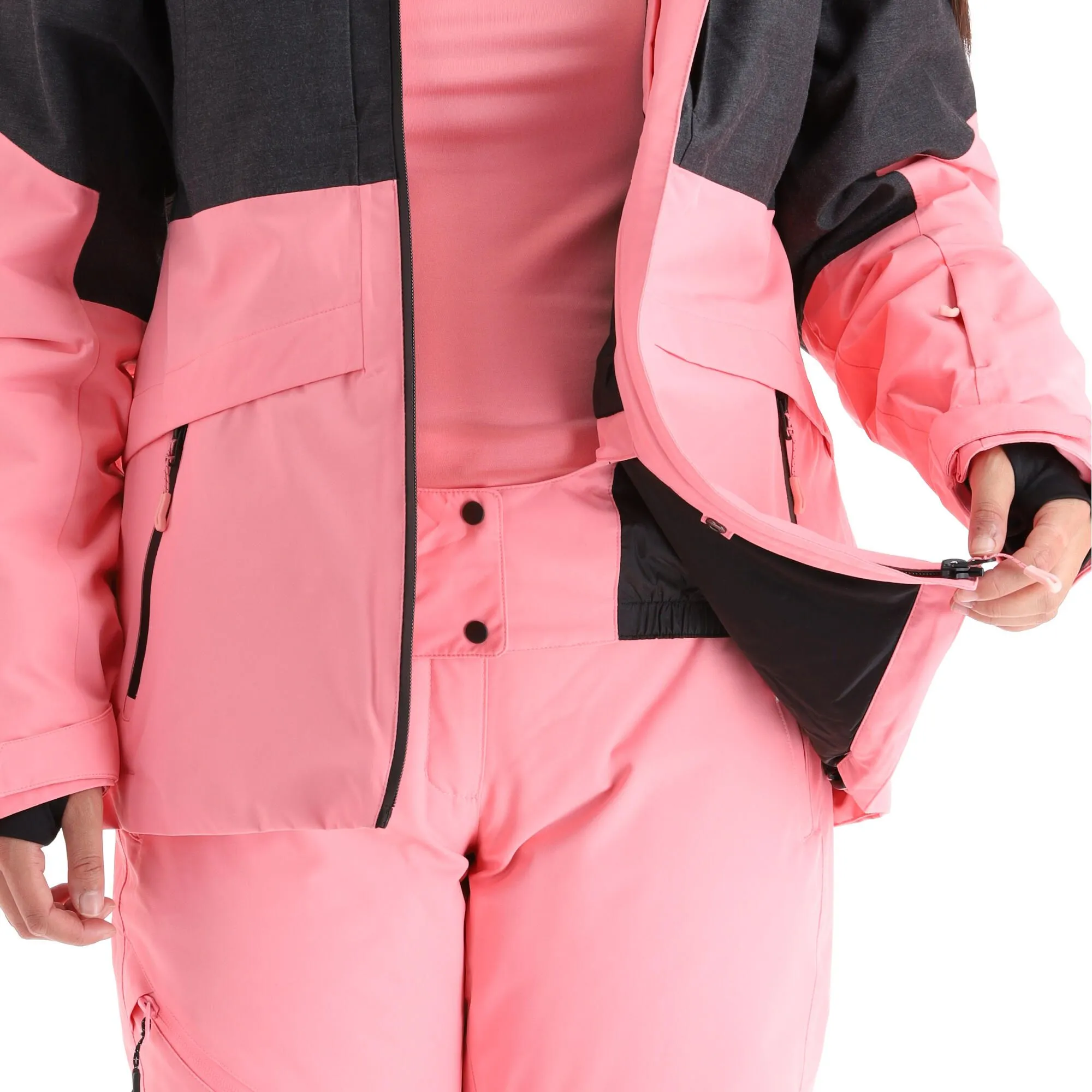 - Fermeture éclair étanche La grande fermeture éclair sur le devant de la veste de ski est hydrofuge.