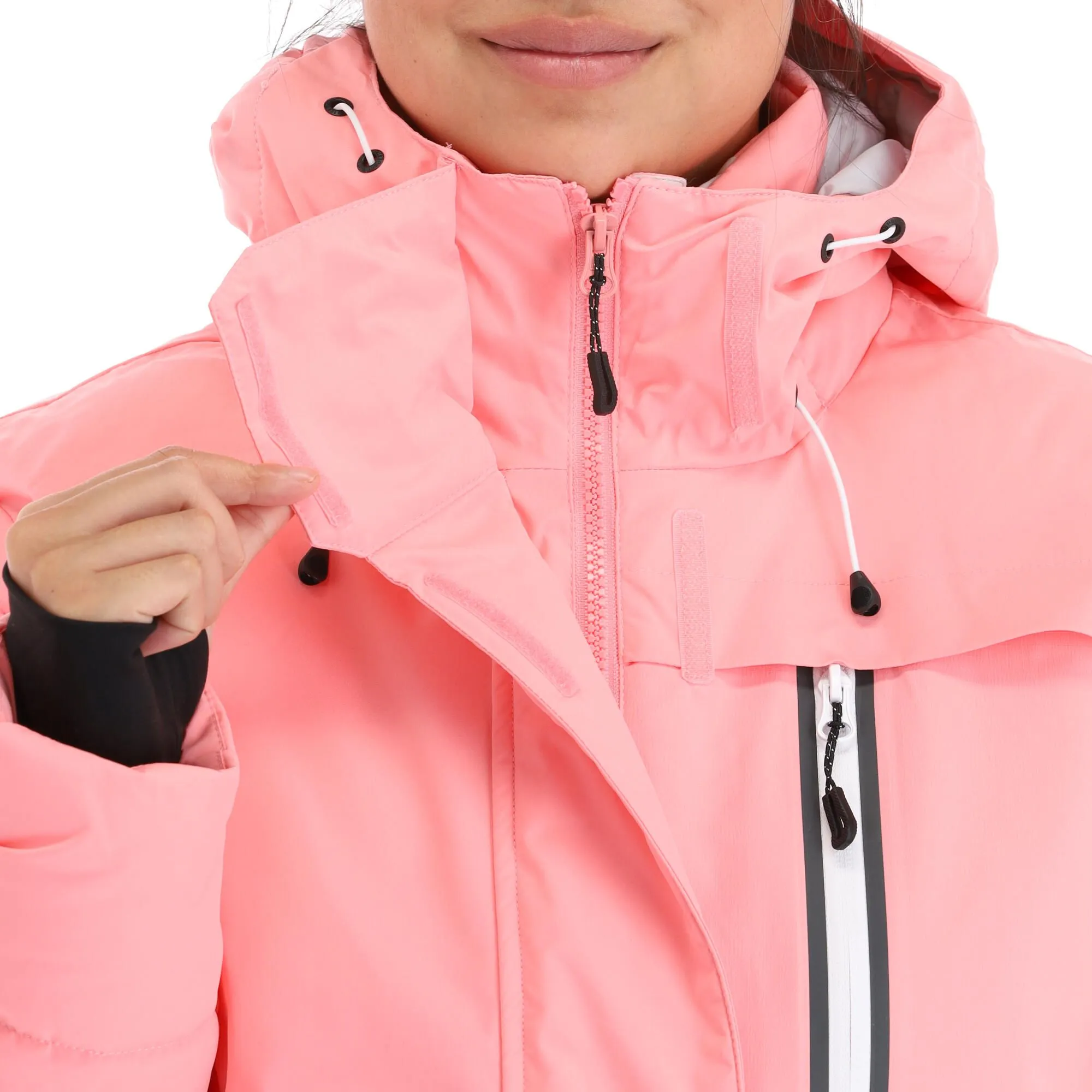 - Capuche réglable La capuche de la veste de ski est réglable.