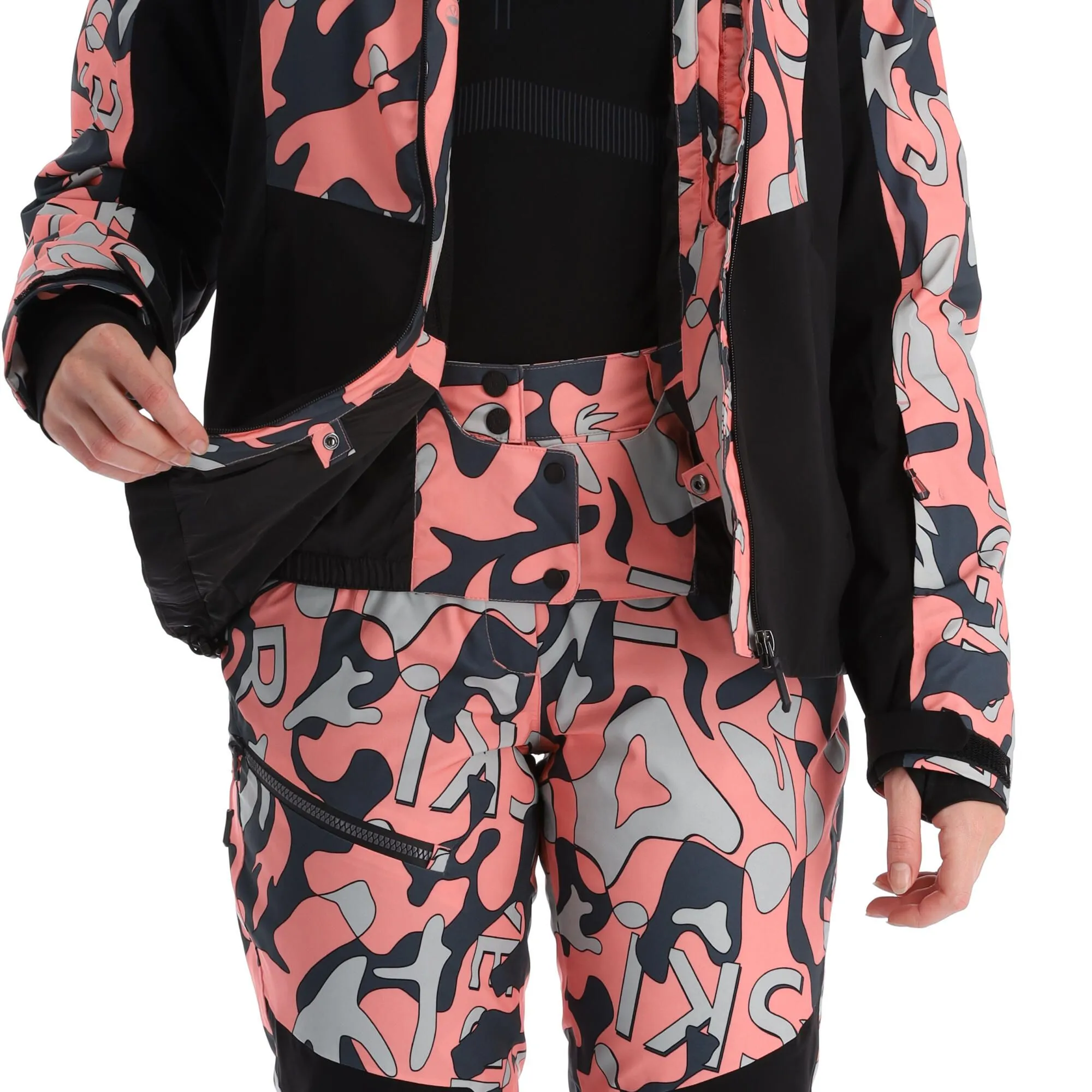 - Poignets ajustables La veste de ski a des poignets ajustables. Cela vous permet de fermer la veste de ski autour de vos poignets.