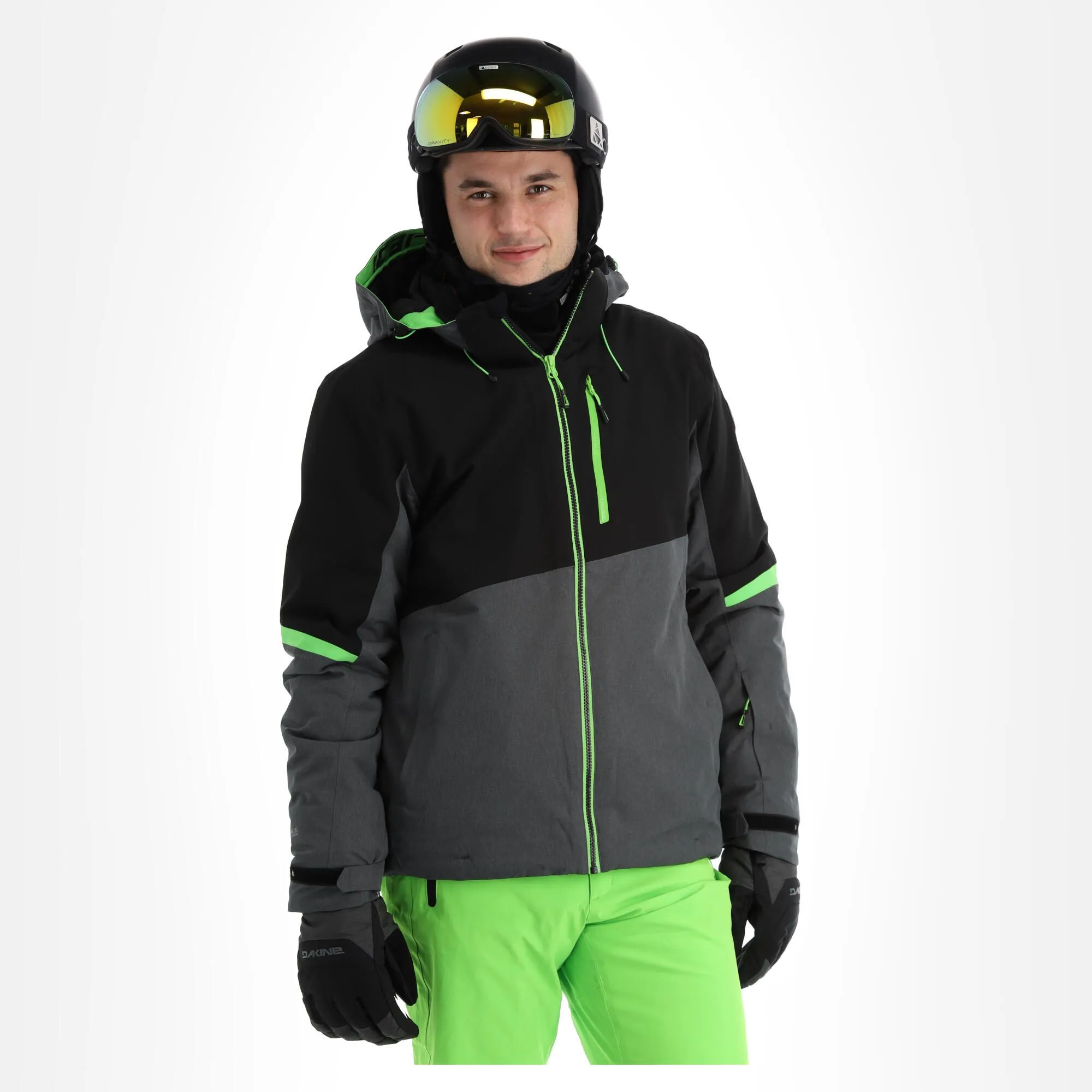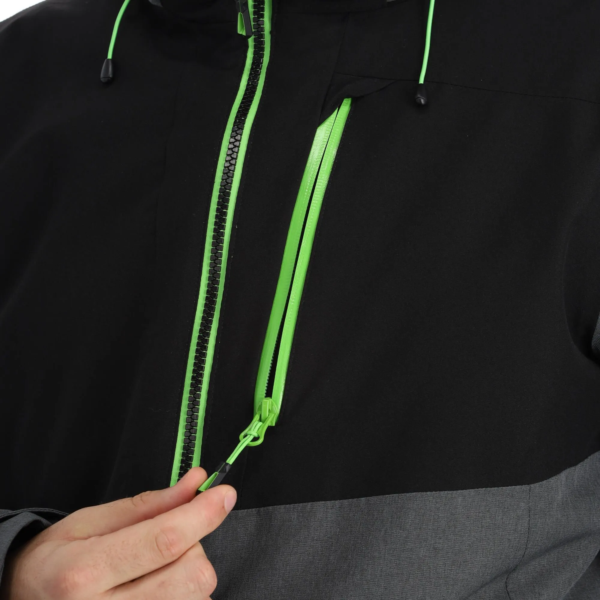- Fermeture éclair étanche La grande fermeture éclair sur le devant de la veste de ski est hydrofuge.