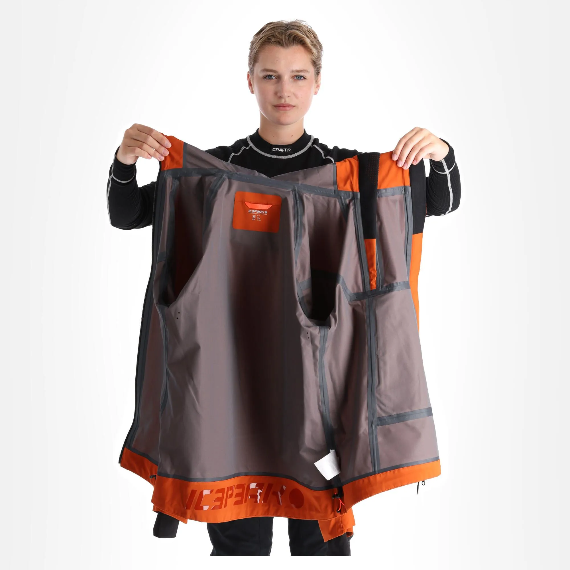 - Fermeture éclair étanche La grande fermeture éclair sur le devant de la veste de ski est hydrofuge.
