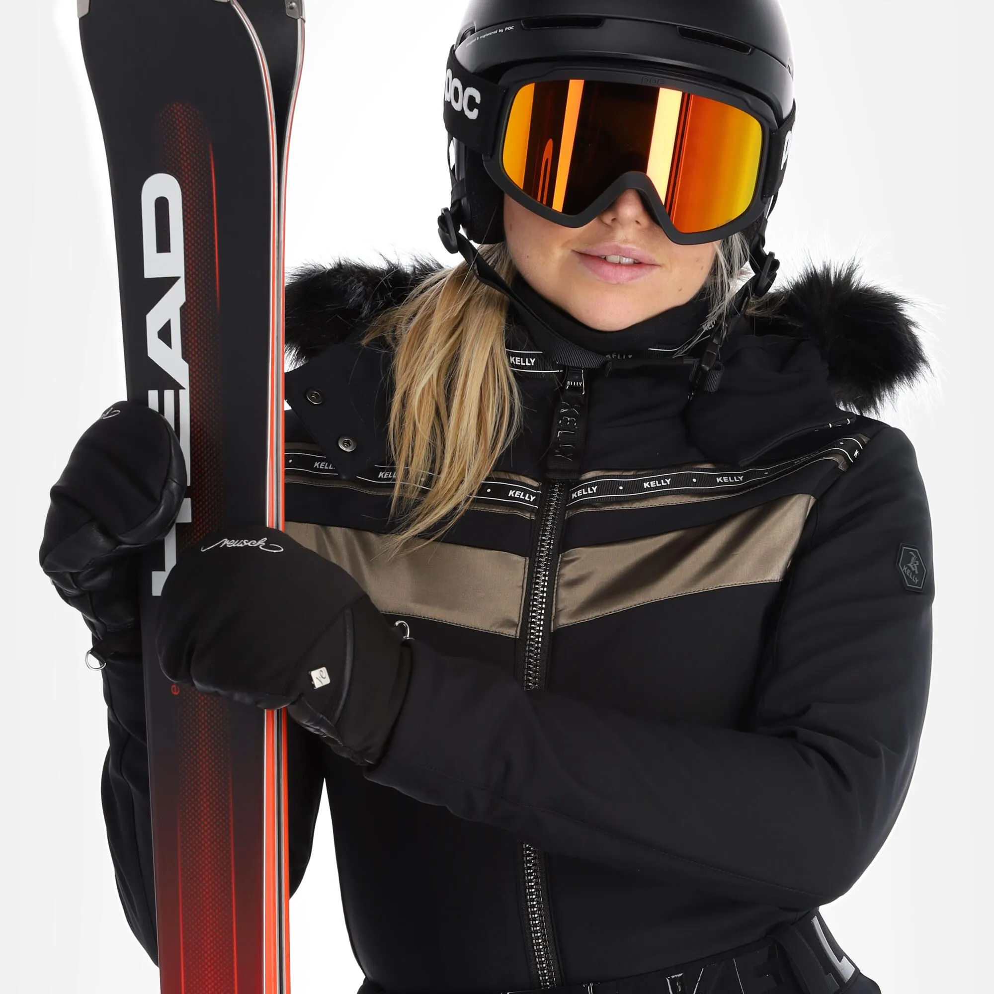 - Col en fourrure véritable La veste de ski a un col avec de la vraie fourrure.
