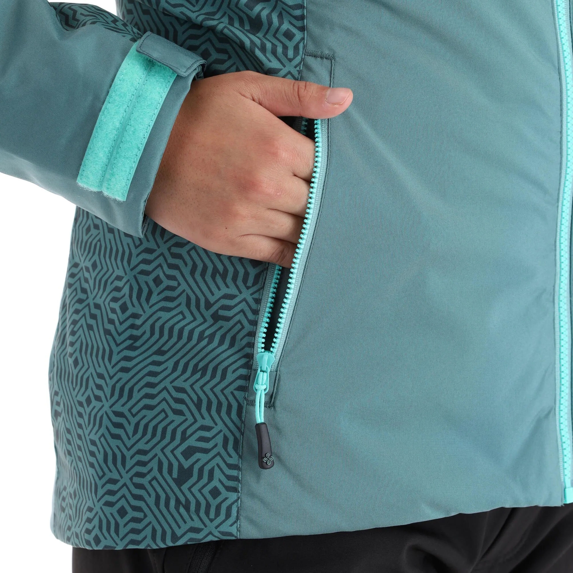This Kilpi FLIP-W women’s ski jacket is the ideal choice for customers looking for high quality at an affordable price. The jacket offers all the basic functional features of a ski jacket. In addition to the two main pockets, the jacket also features a sleeve pocket for your ski pass and an internal pocket for valuables. Inside there is an anti-snow collar. The bottom hem has an elasticated drawstring and the sleeve hems can be fastened with Velcro. The hood is fully adjustable with an elasticated drawstring.
