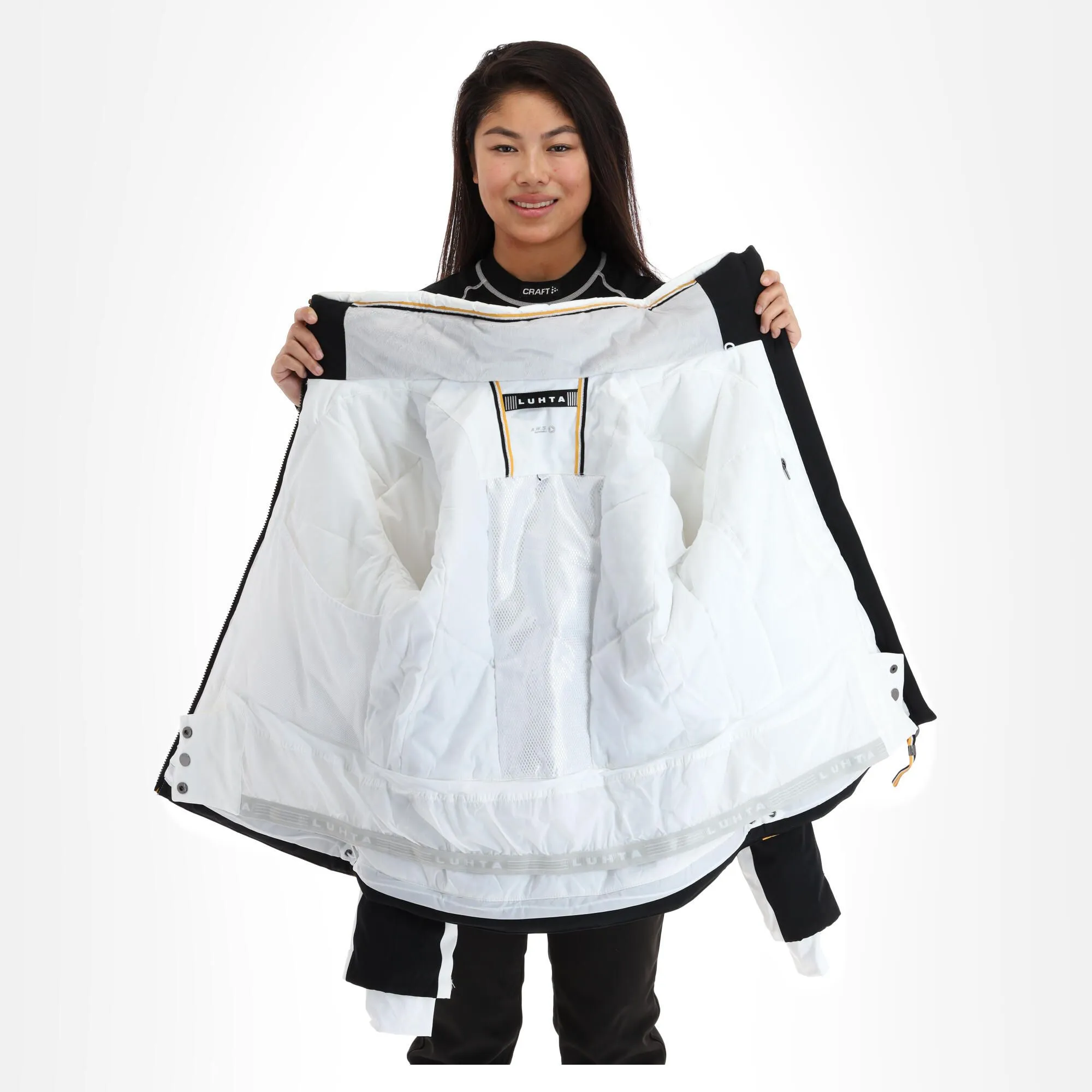 - Ourlet réglable La veste de ski a un ourlet réglable, pour permettre de la fermer correctement en bas.