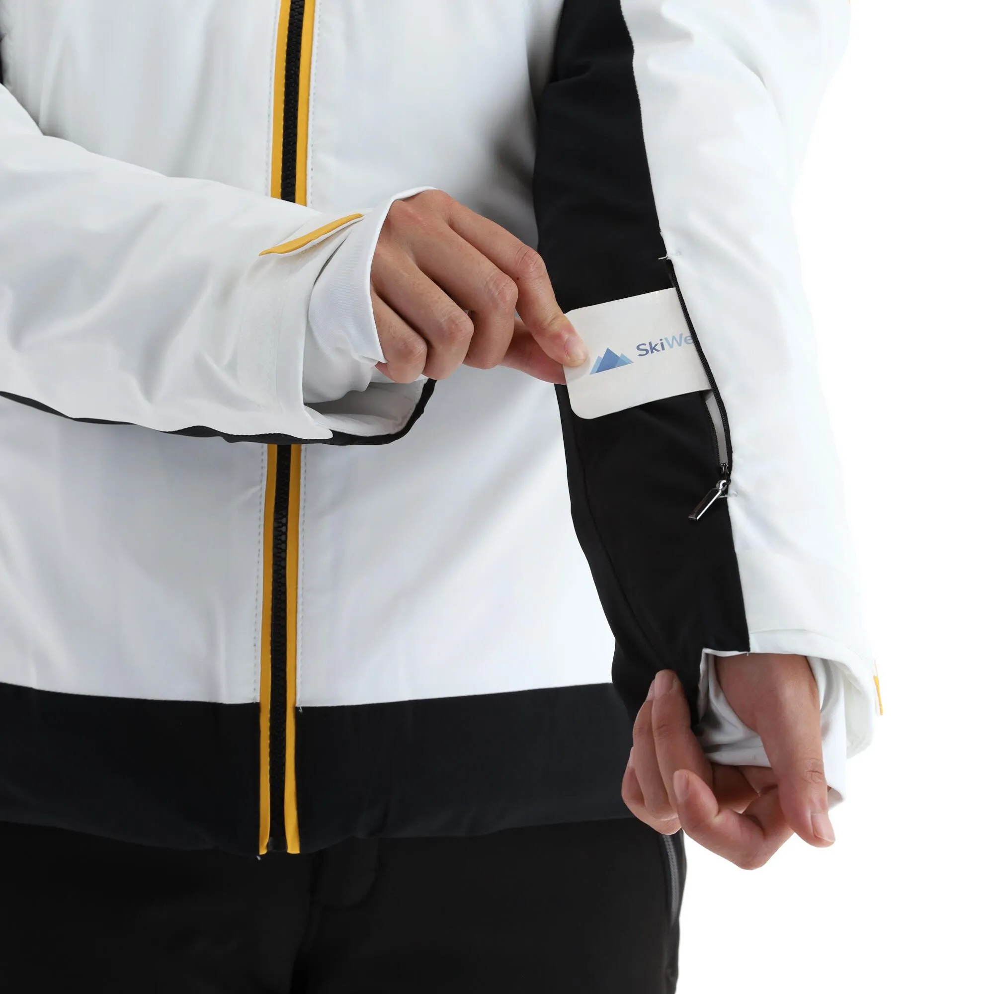 - Poignets ajustables La veste de ski a des poignets ajustables. Cela vous permet de fermer la veste de ski autour de vos poignets.