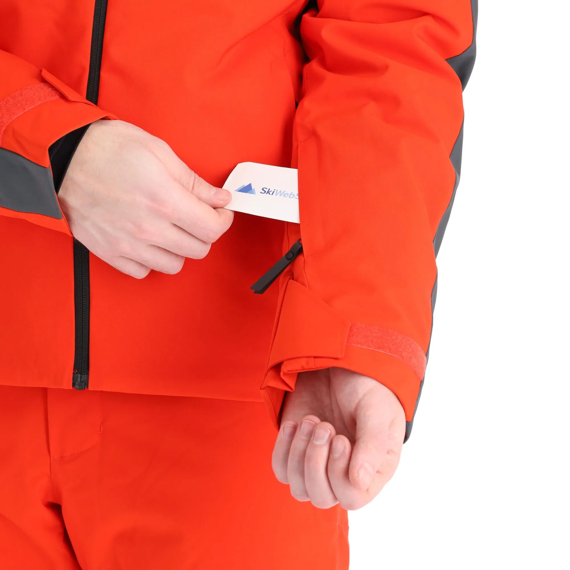- Pochette pour le forfait de ski La veste de ski est munie d’une pochette où vous pouvez mettre votre forfait de ski, pour éviter de le sortir sur les remontées mécaniques.