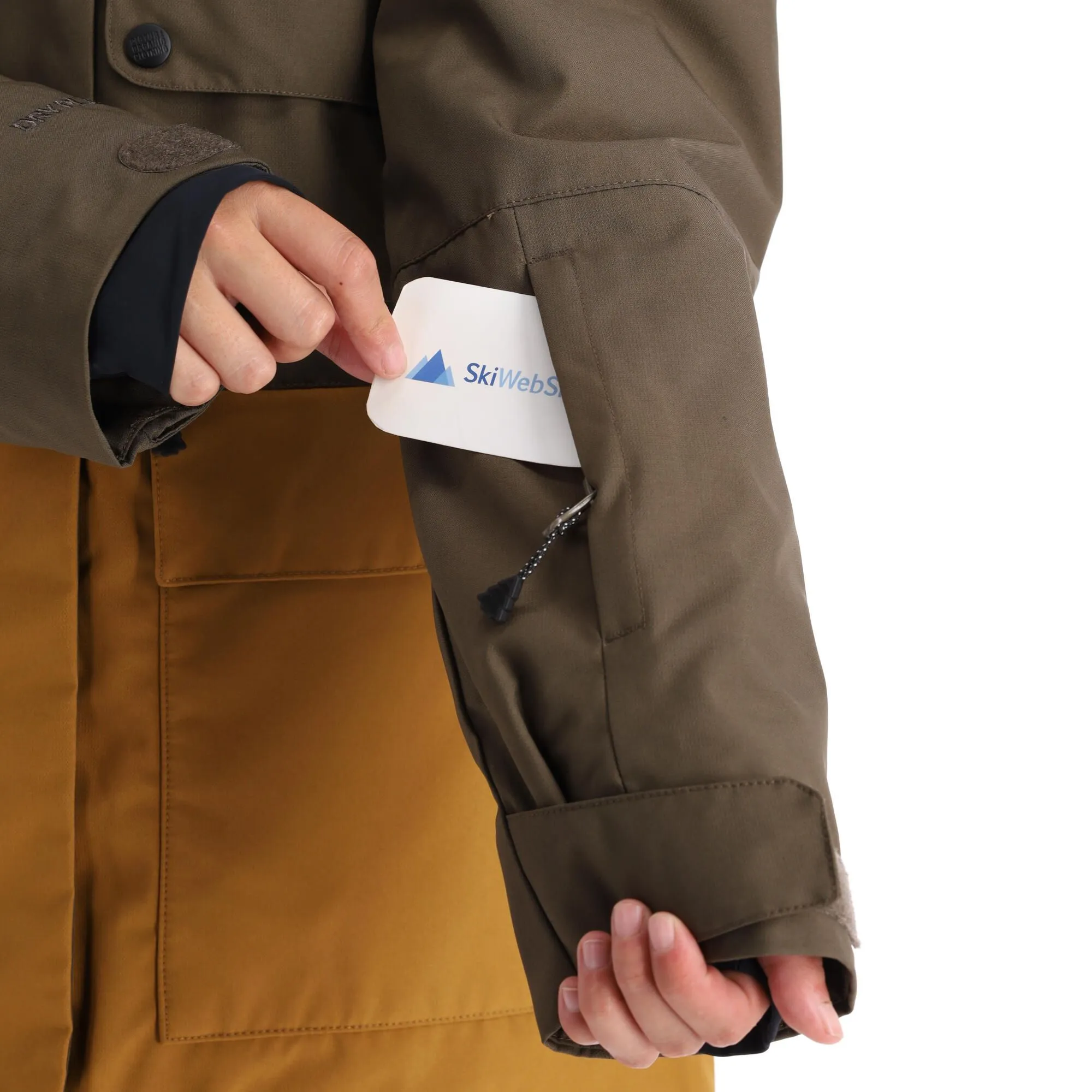 - Pochette pour le forfait de ski La veste de ski est munie d’une pochette où vous pouvez mettre votre forfait de ski, pour éviter de le sortir sur les remontées mécaniques.