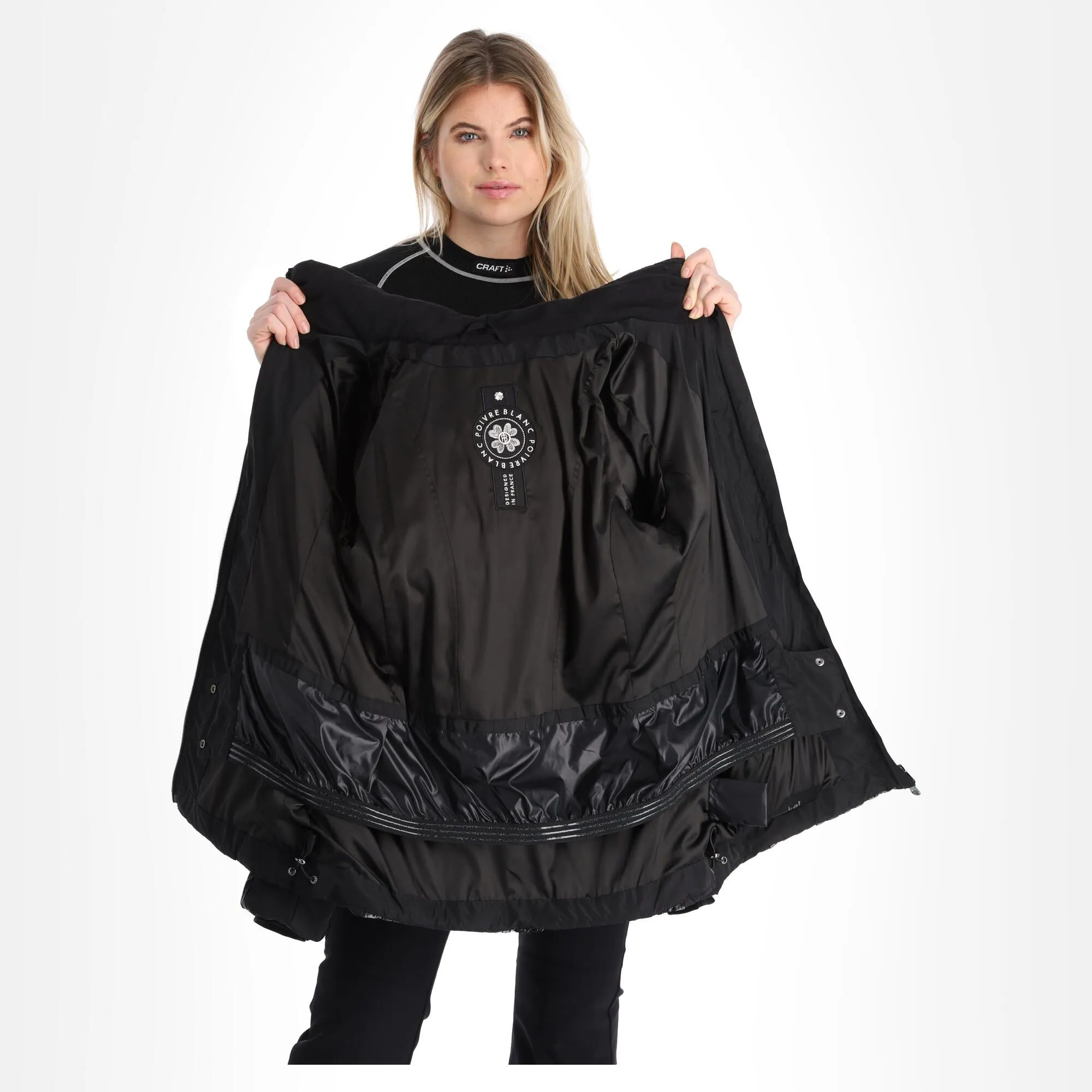 - Col en fausse fourrure La veste de ski a un col avec de la fausse fourrure.