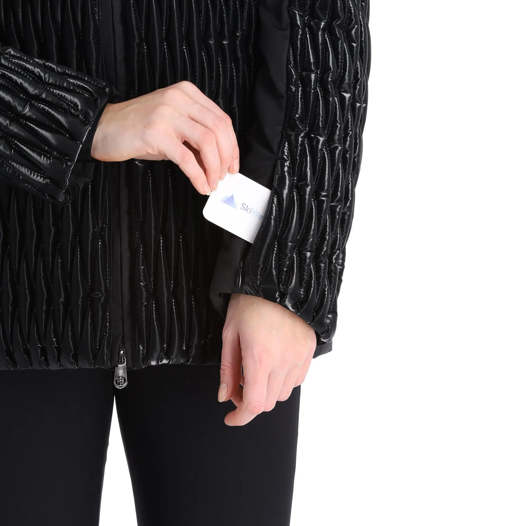 - Pochette pour le forfait de ski La veste de ski est munie d’une pochette où vous pouvez mettre votre forfait de ski, pour éviter de le sortir sur les remontées mécaniques.