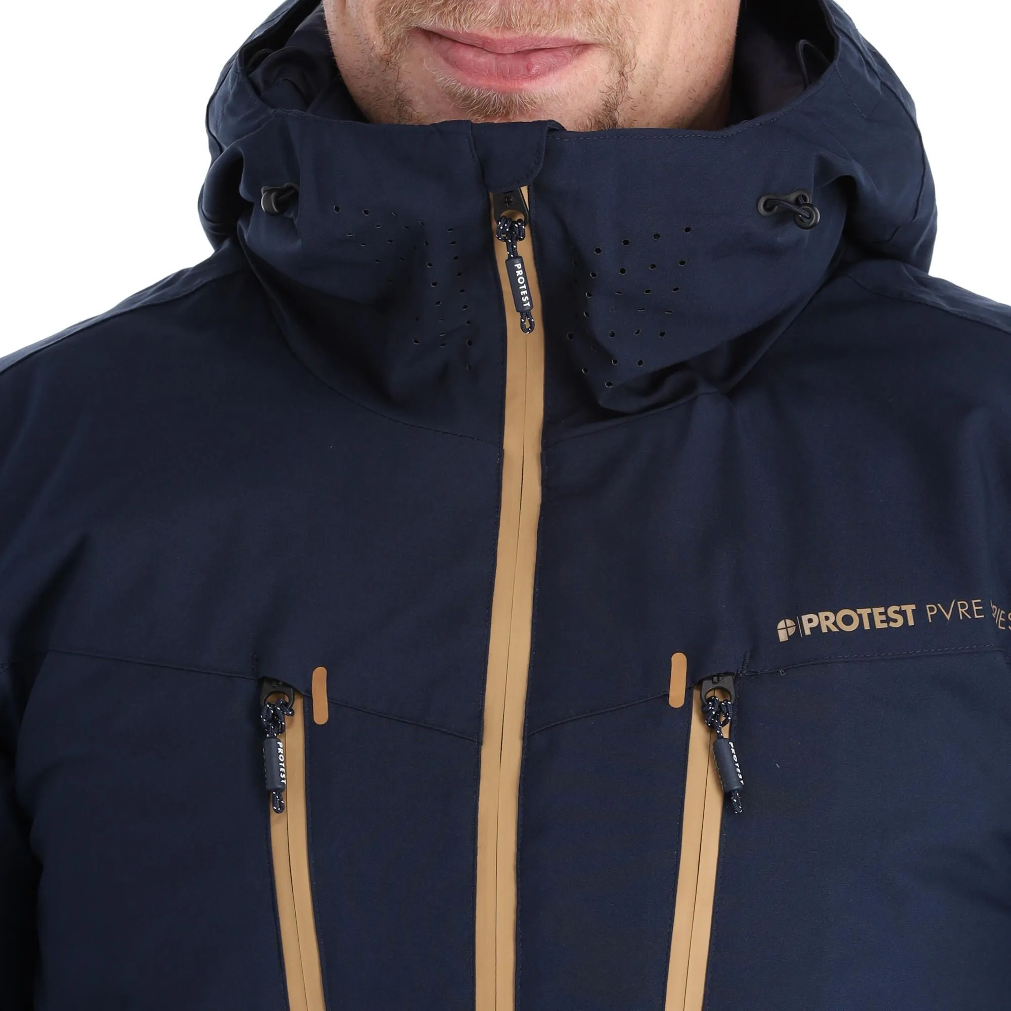 - Veste de ski avec fermetures éclair de ventilation Les fermetures éclair de ventilation de la veste de ski permettent de réguler correctement la température du corps. En fonction du besoin elles peuvent s’ouvrir et se fermer.
