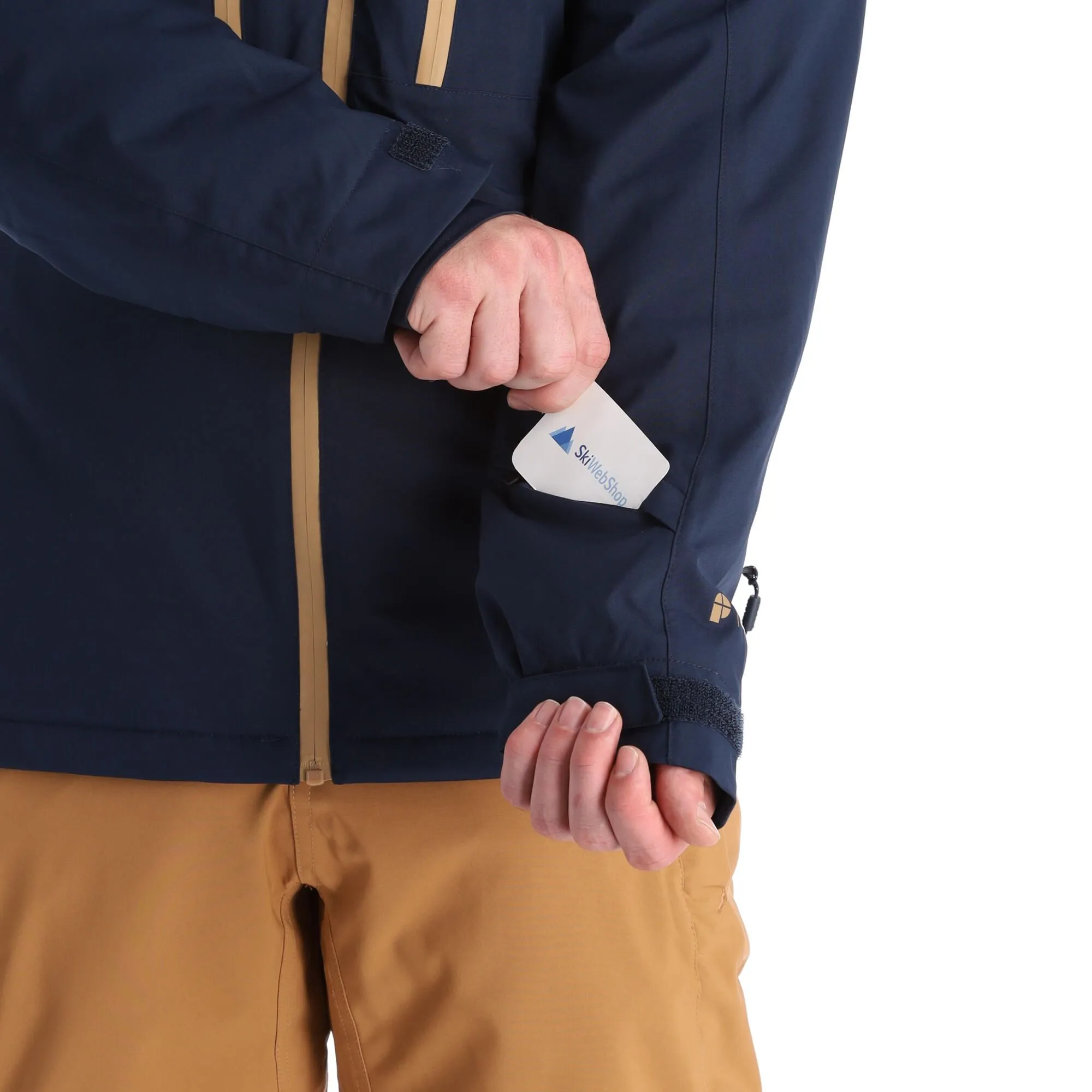 - Pochette pour le forfait de ski La veste de ski est munie d’une pochette où vous pouvez mettre votre forfait de ski, pour éviter de le sortir sur les remontées mécaniques.