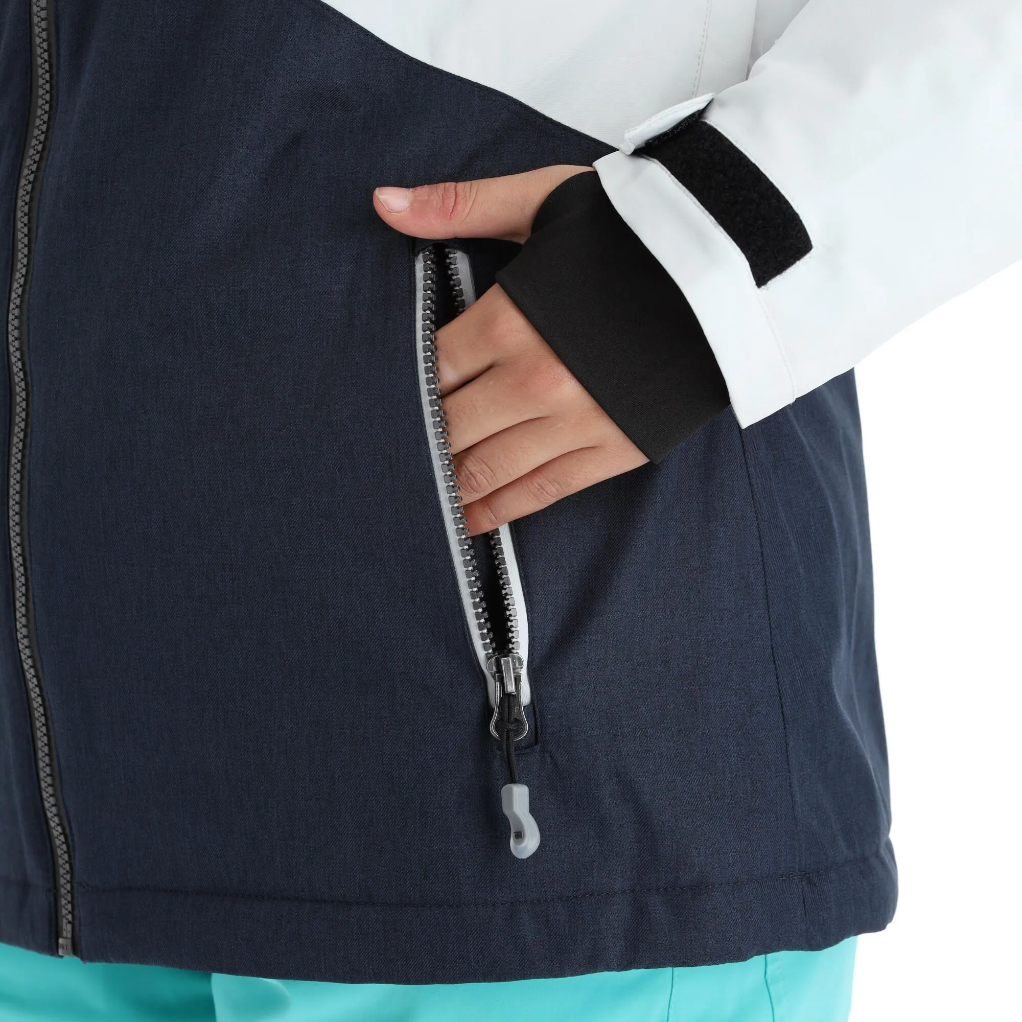 - Fermeture éclair étanche La grande fermeture éclair sur le devant de la veste de ski est hydrofuge.