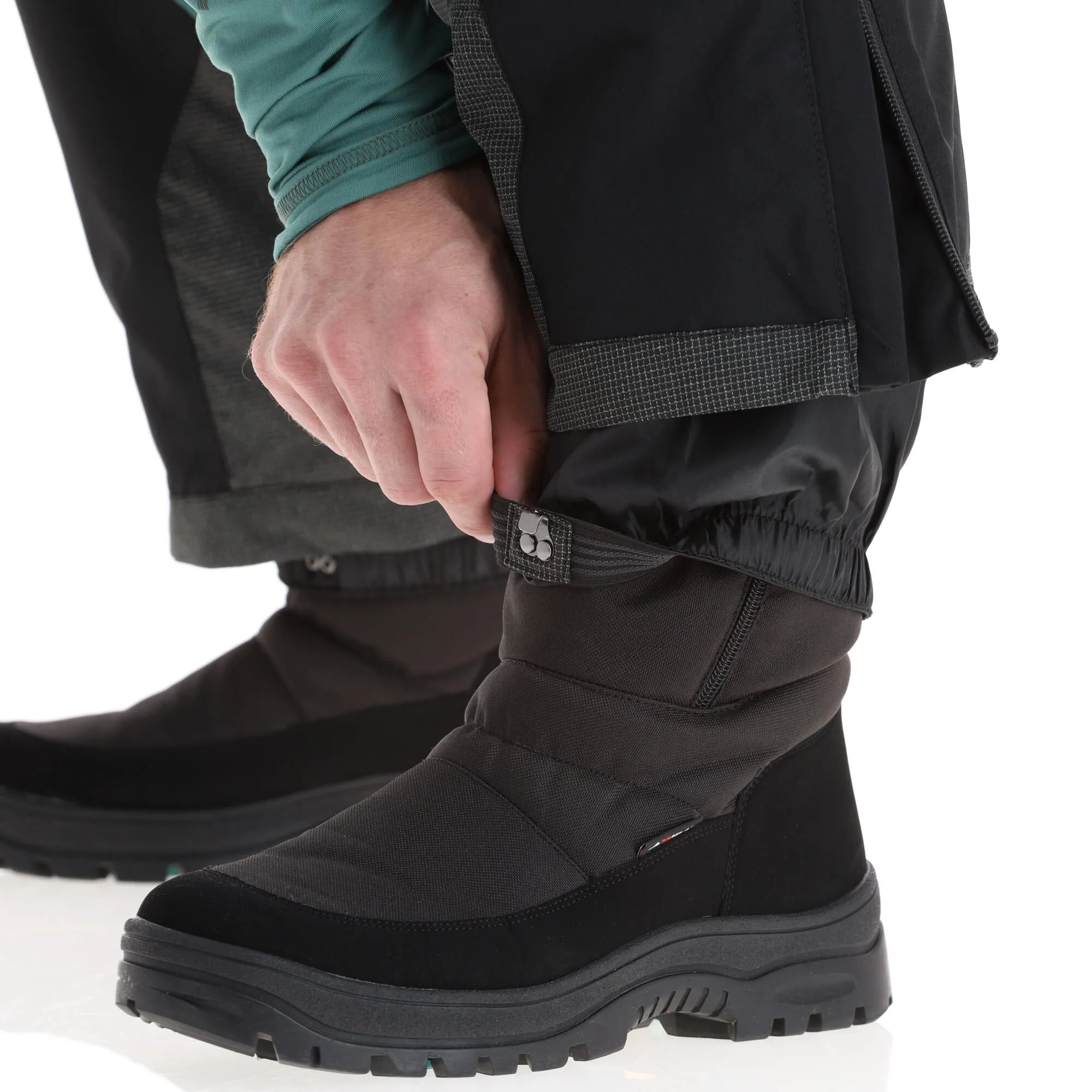 - Guêtres pare-neige Le pantalon de ski est doté de guêtres pare-neige au niveau du bas des jambes. La bande élastique empêche la neige de pénétrer à l’intérieur du pantalon.