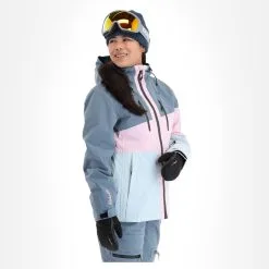 - Fermeture éclair étanche La grande fermeture éclair sur le devant de la veste de ski est hydrofuge.