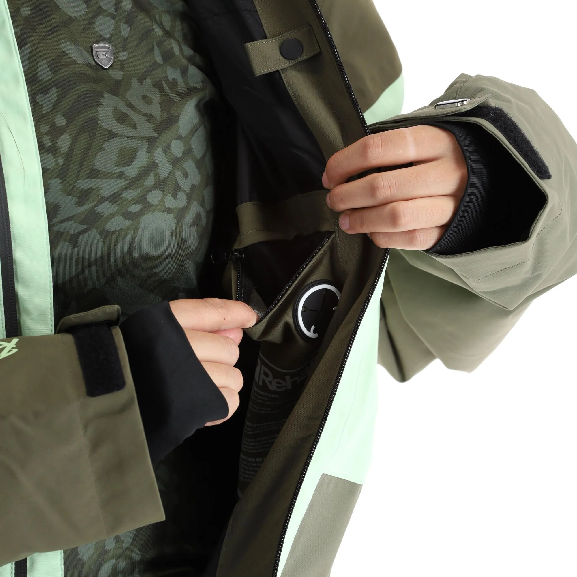 - Poignets ajustables La veste de ski a des poignets ajustables. Cela vous permet de fermer la veste de ski autour de vos poignets.