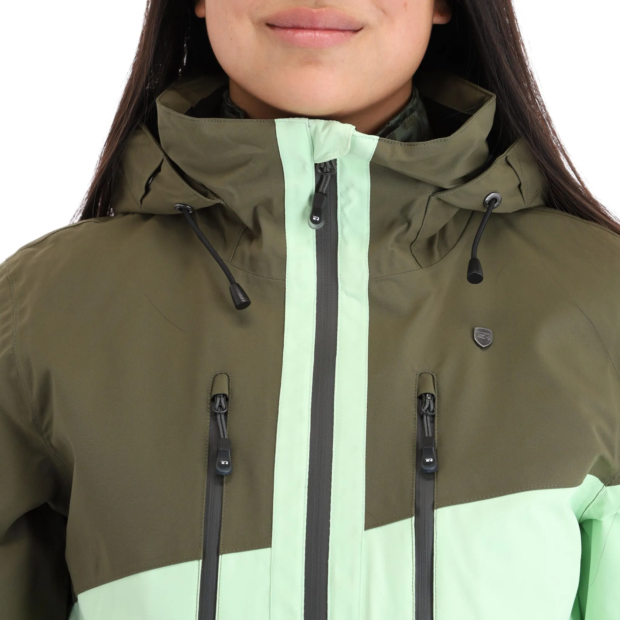 - Fermeture éclair étanche La grande fermeture éclair sur le devant de la veste de ski est hydrofuge.