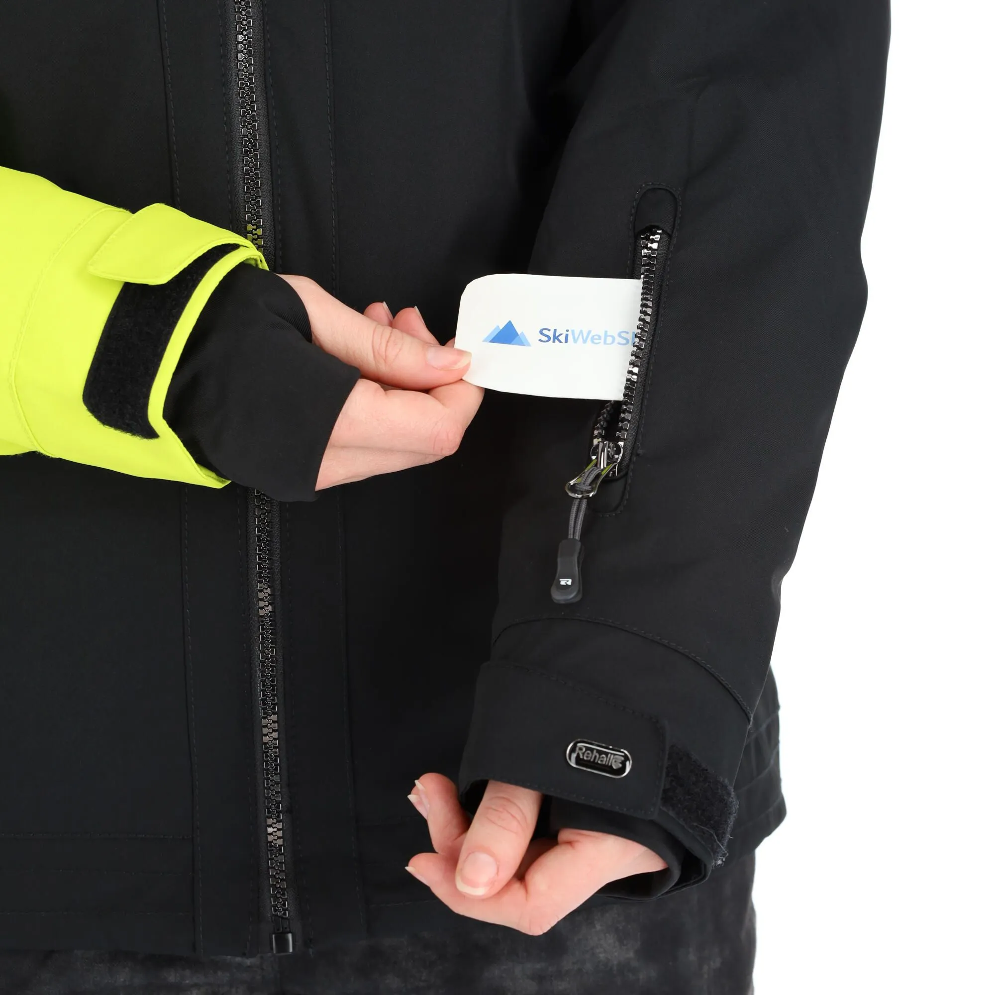 - Pochette pour le forfait de ski La veste de ski est munie d’une pochette où vous pouvez mettre votre forfait de ski, pour éviter de le sortir sur les remontées mécaniques.