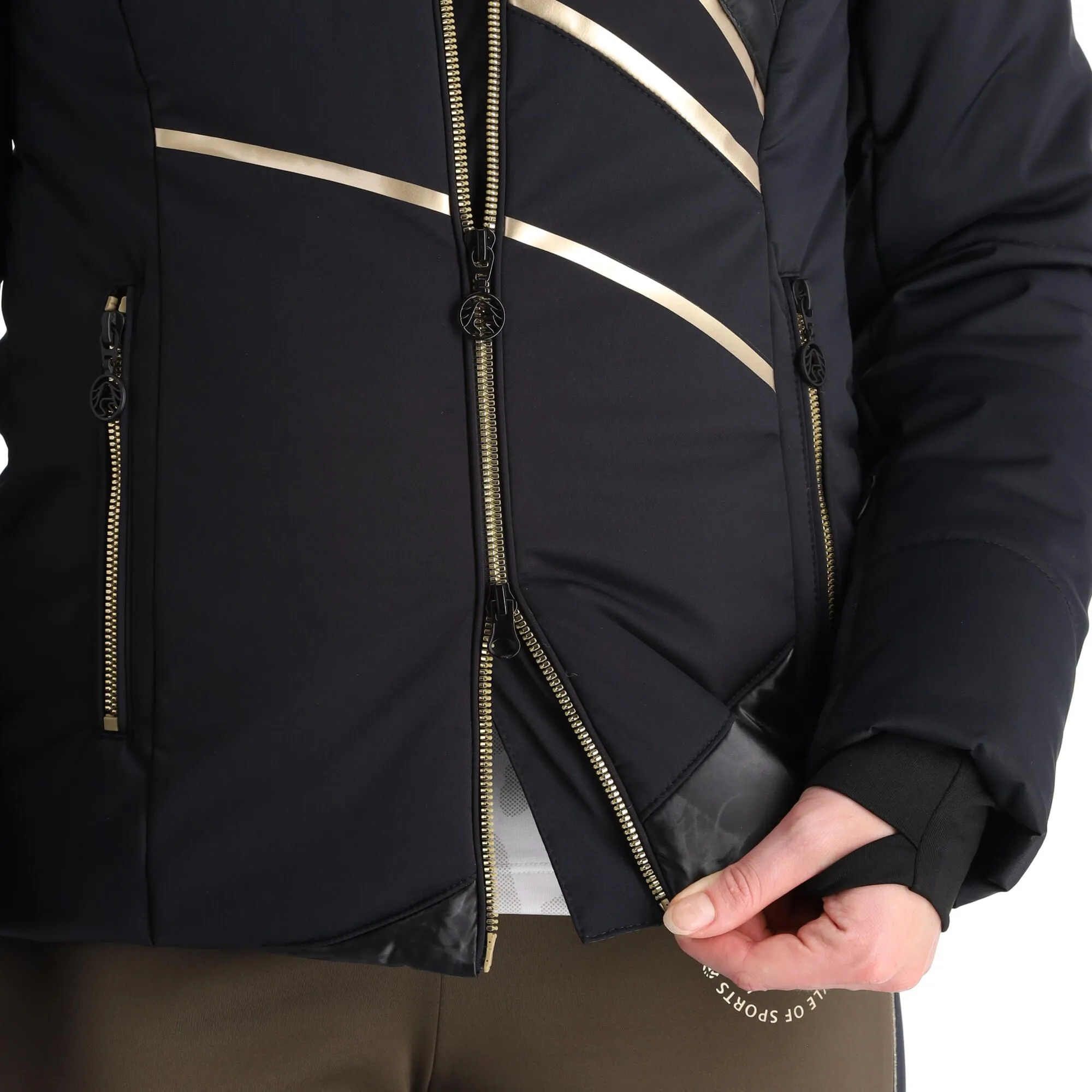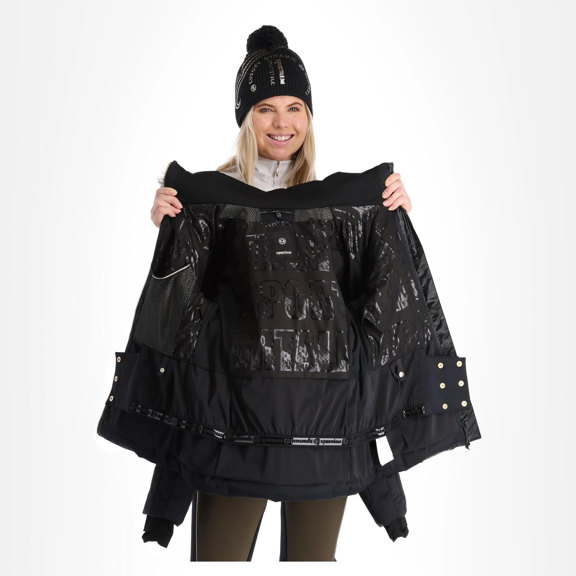 - Col en fausse fourrure La veste de ski a un col avec de la fausse fourrure.