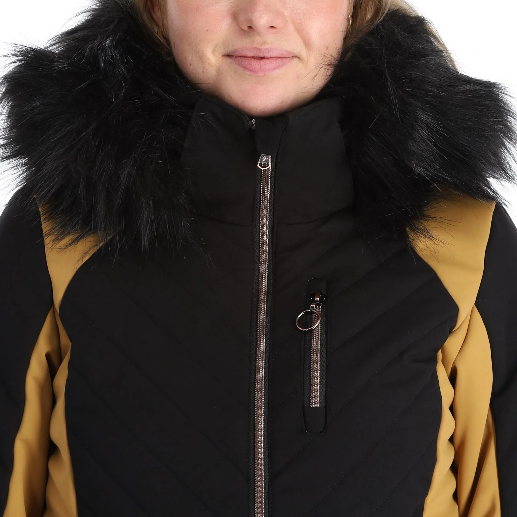 - Col en fausse fourrure La veste de ski a un col avec de la fausse fourrure.