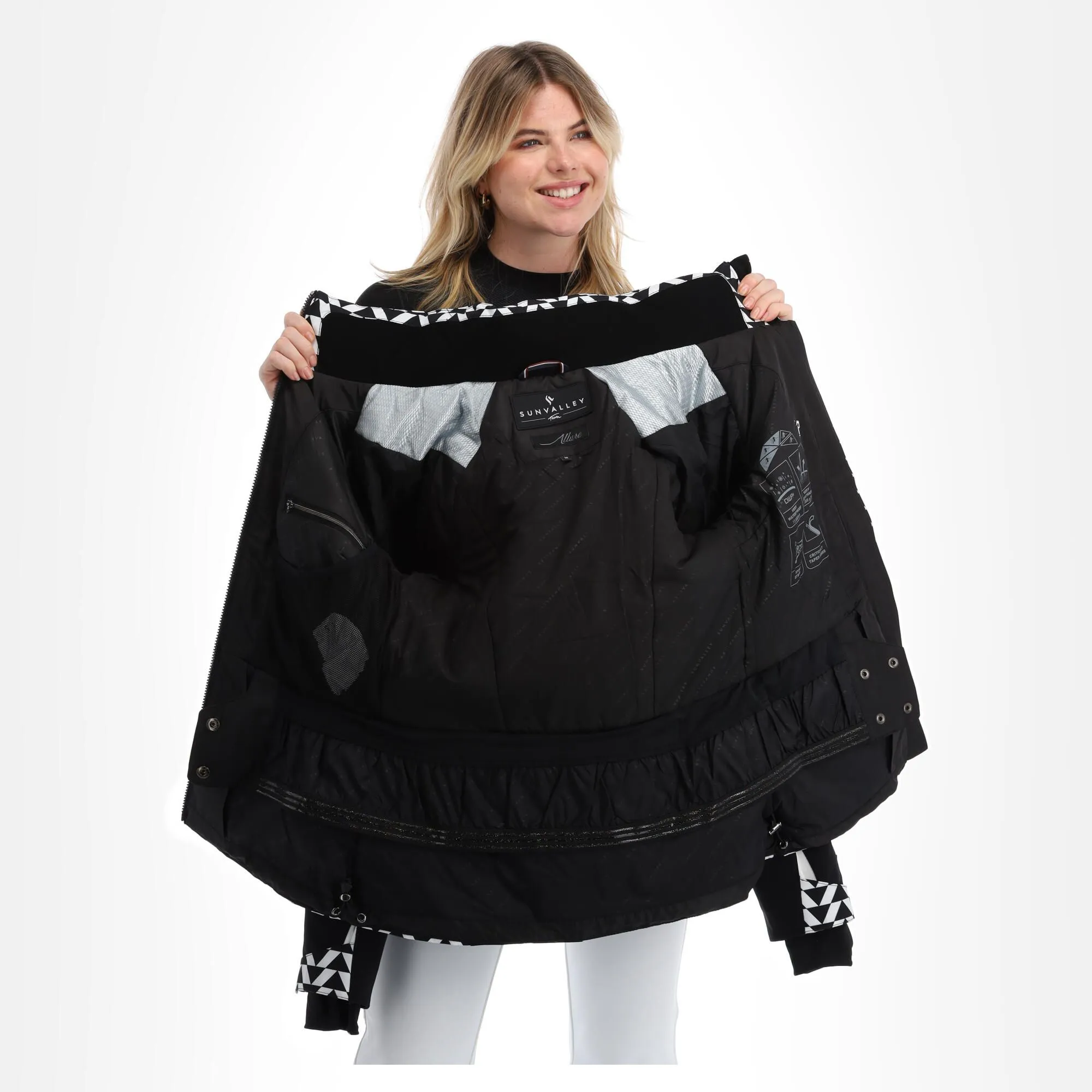 - Jupe pare-neige fixe La veste de ski est munie d’une bande Ă©lastique en bas, de sorte que la neige ne peut pas pĂ©nĂ©trer par en-dessous.