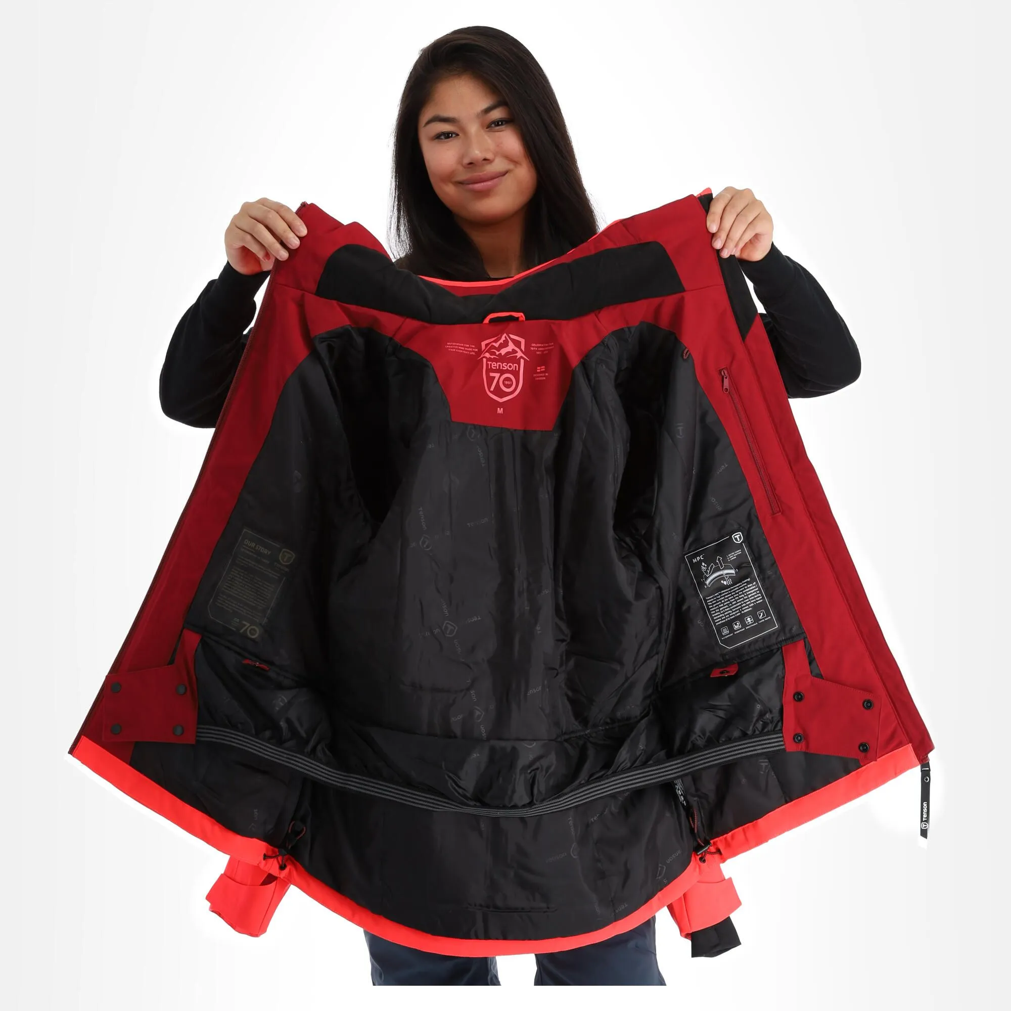 - Fermeture éclair étanche La grande fermeture éclair sur le devant de la veste de ski est hydrofuge.