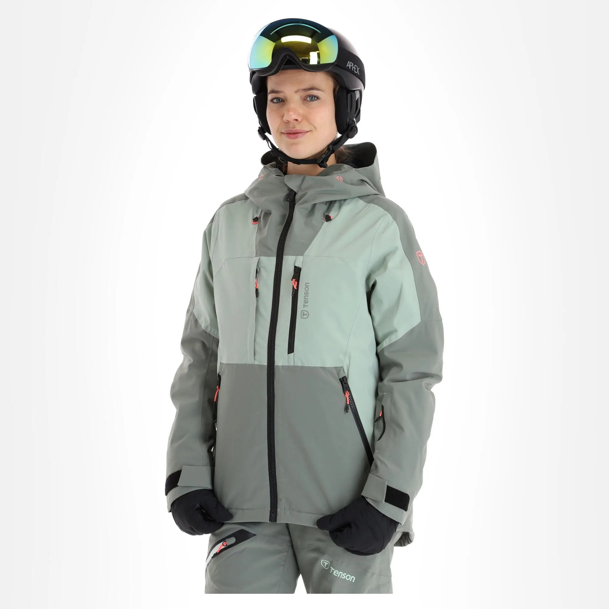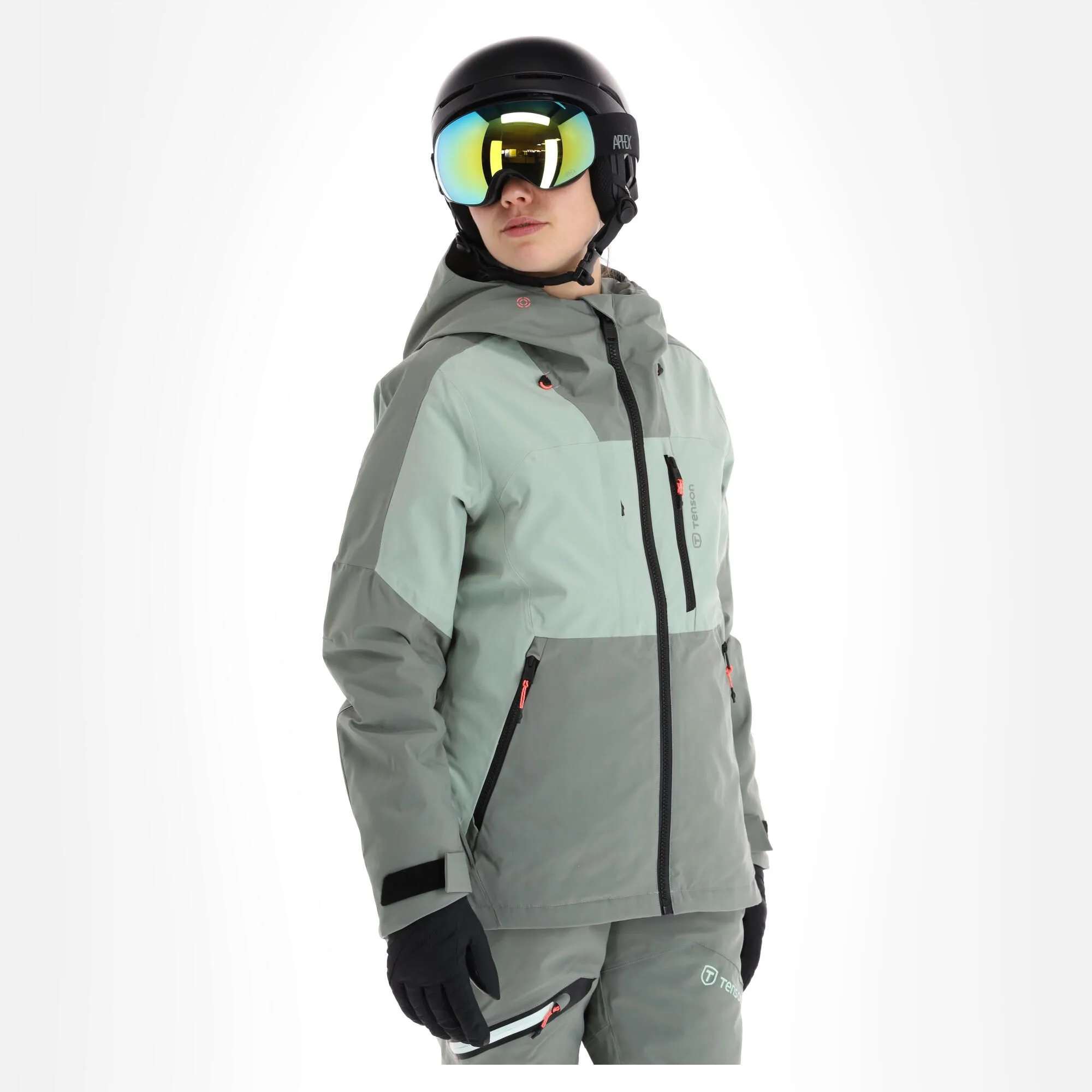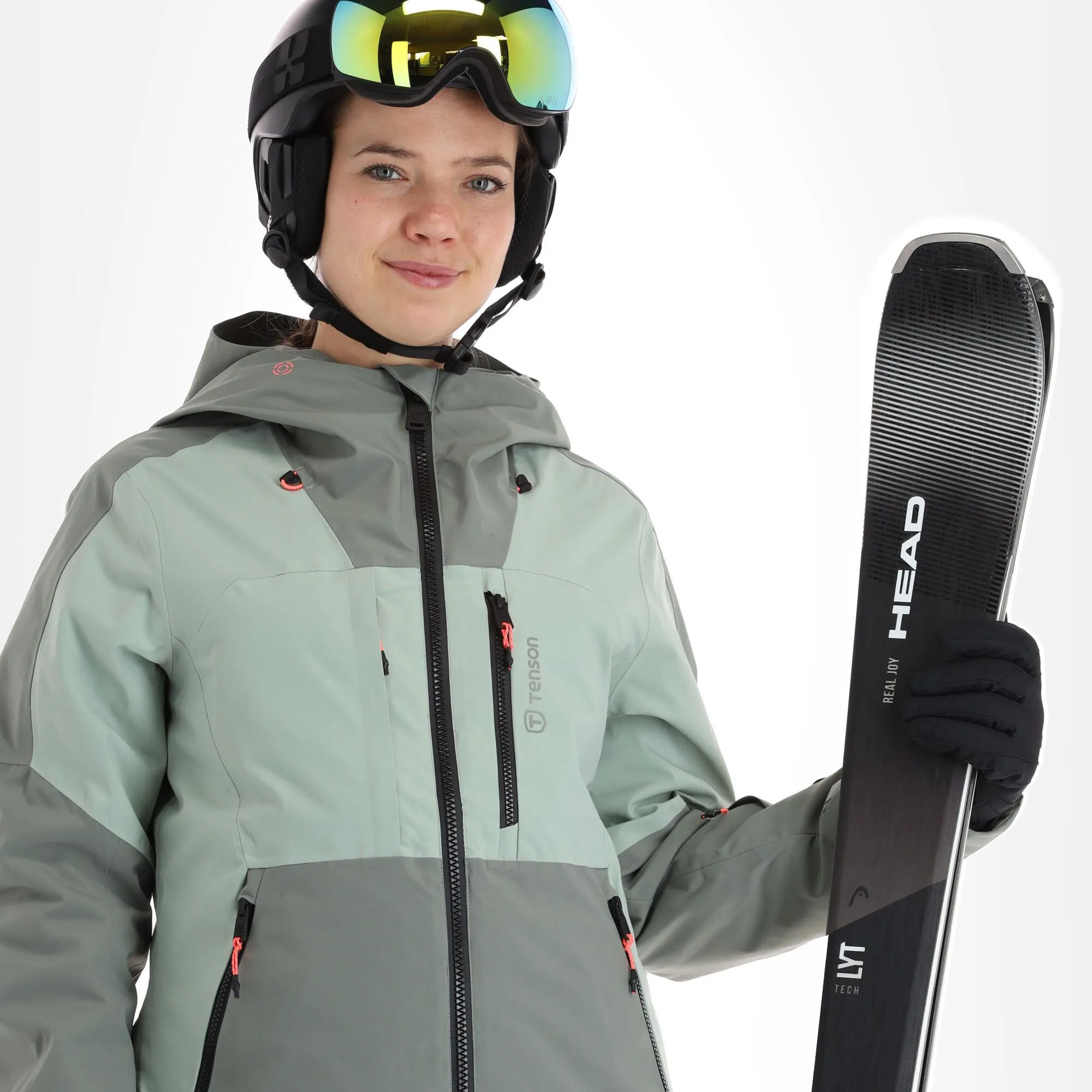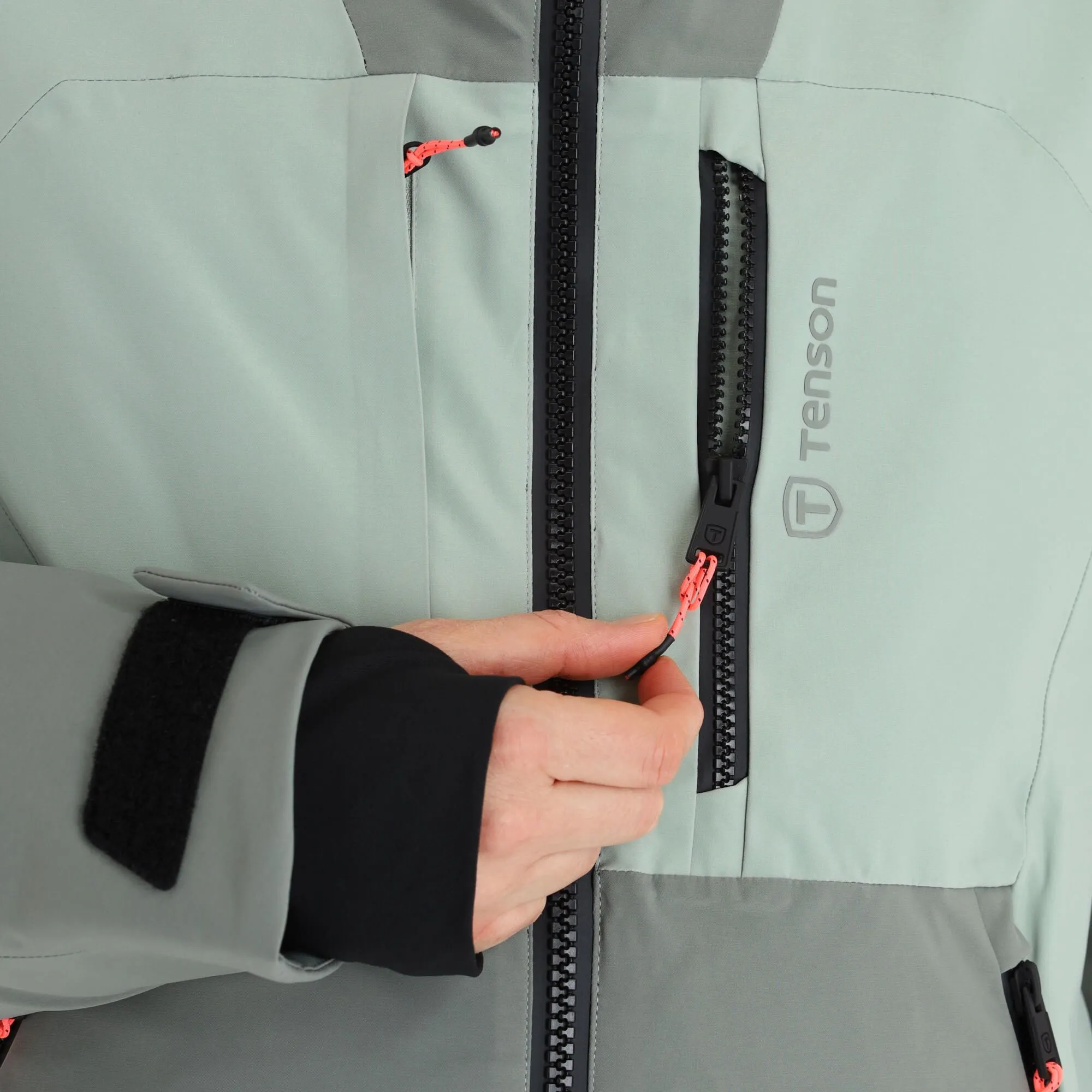 - Fermeture éclair étanche La grande fermeture éclair sur le devant de la veste de ski est hydrofuge.