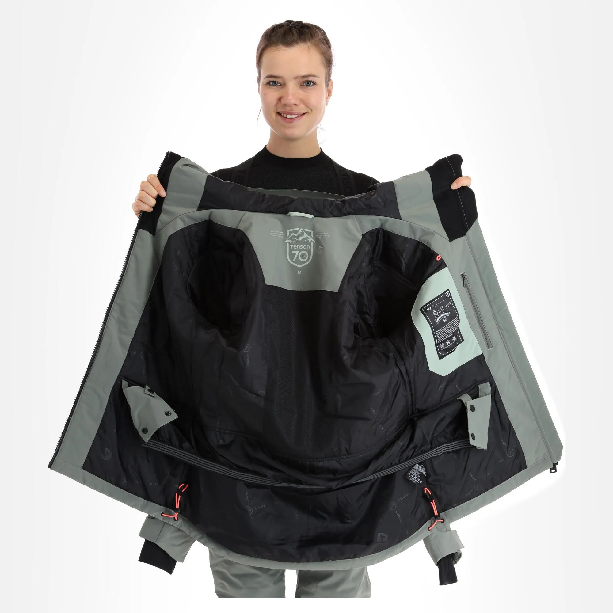 - Ourlet réglable La veste de ski a un ourlet réglable, pour permettre de la fermer correctement en bas.